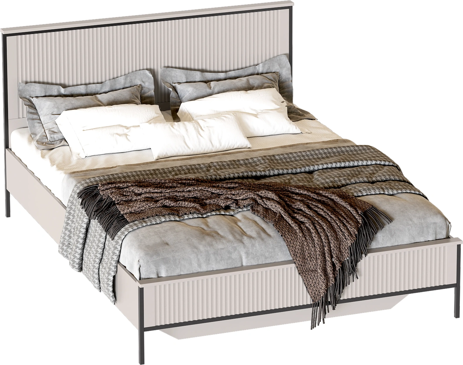 В изголовье кровати в цвете Металл Бруклин / Графит присутствует мягкий элемент, изготовленный из высококачественного велюра Velutto и ППУ. Изголовье кровати в цвете Персидский жемчуг / Персидский жемчуг выполнено из МДФ и декорировано фрезеровкой. Матрасное основание из деревянных ламелей встроено в конструкцию кровати.