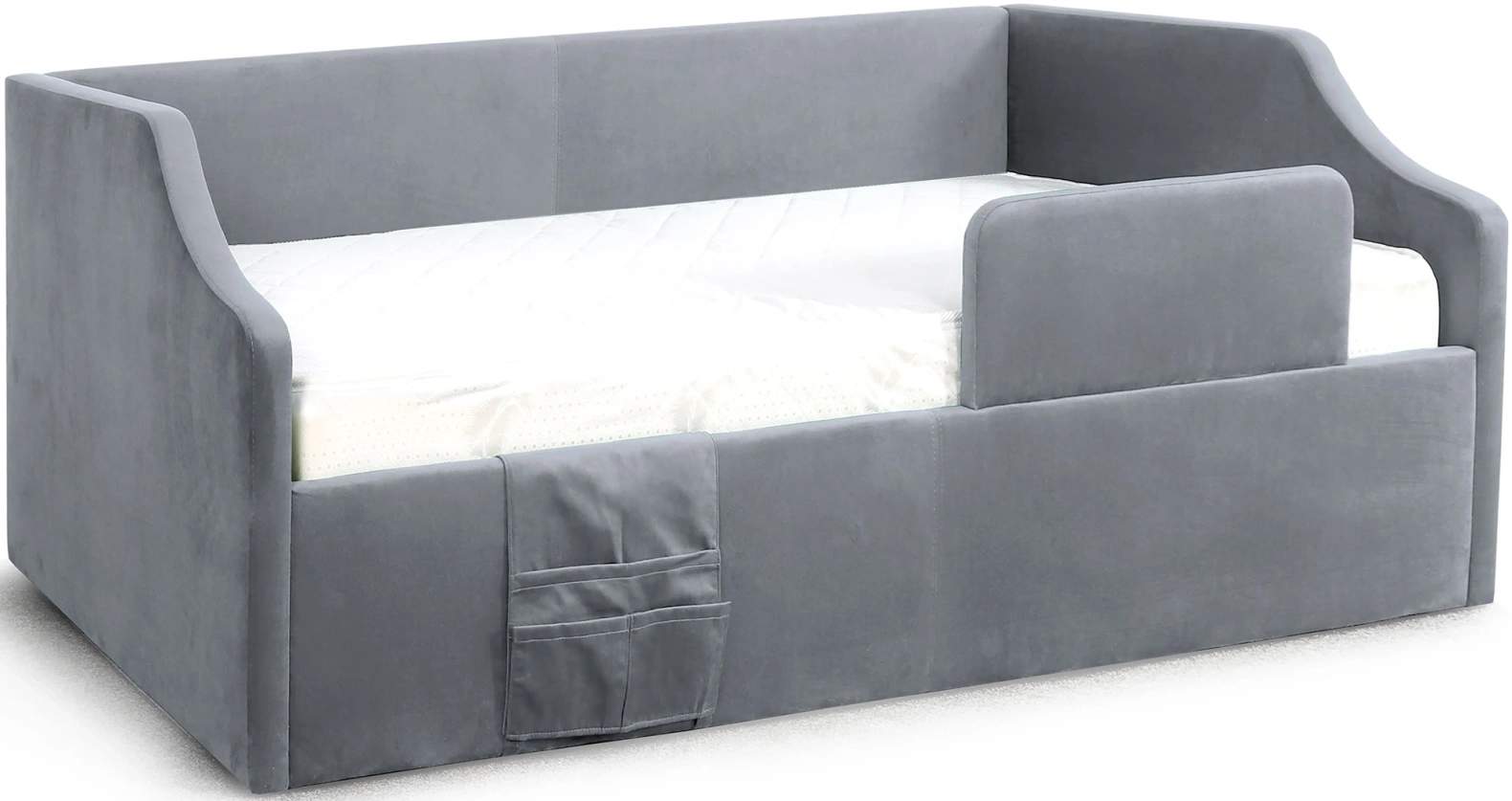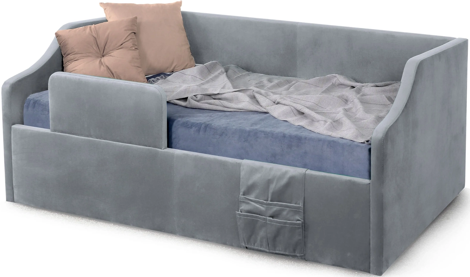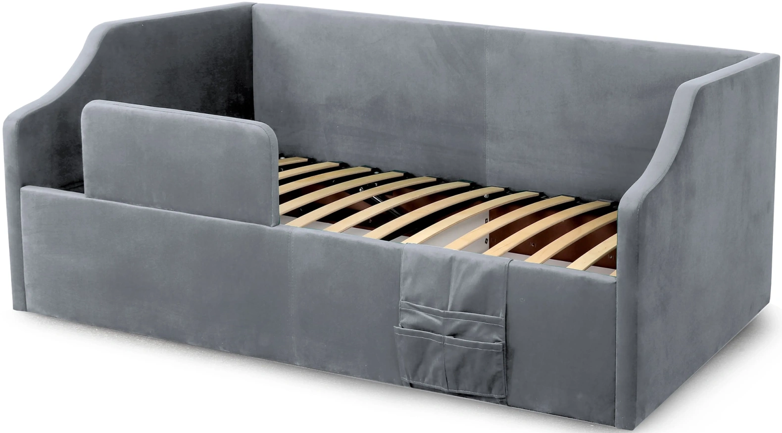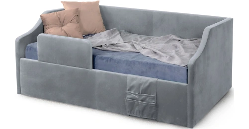 Кровать “Дрим” - это идеальное решение для детской комнаты. Мягкая обивка из приятного на ощупь, гипоаллергенного велюра обеспечивает комфорт и уют во время сна.