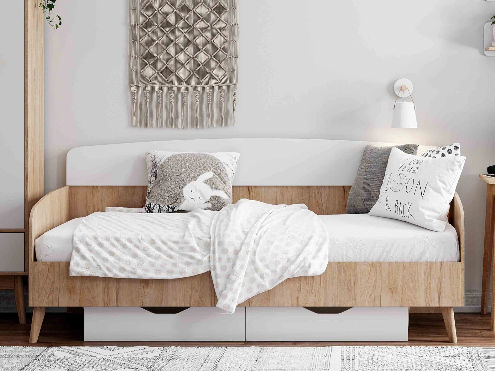 Кровать "Калгари" - идеальный выбор для небольшой спальни или детской комнаты. Она выполнена из качественных материалов и имеет стильный дизайн, со спинкой и сгругленными углами.