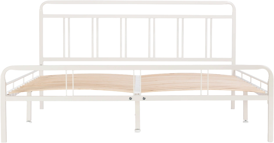 Материал каркаса - Металл; Материал ножек - Металл; Ортопедическое основание - в комплекте; Материал ортопедического основания - с деревянными ламелями; Цвет каркаса - Белый; Цвет ножек - Белый; Ширина - 143; Глубина - 206; Высота - 90,3; Размер спального места - 140 х 200; Длина кровати - 206; Ширина кровати - 143; Высота изножья - 46,3; Высота изголовья - 90,3;