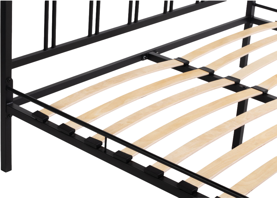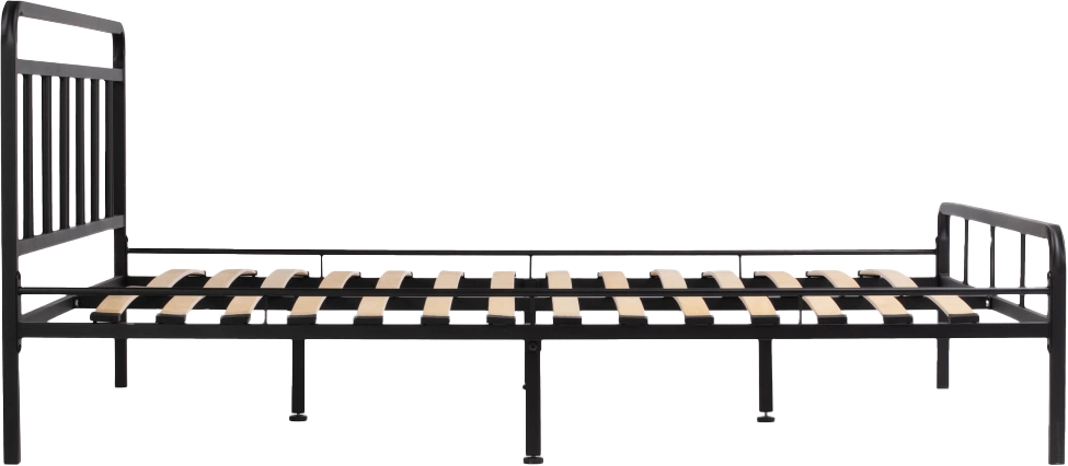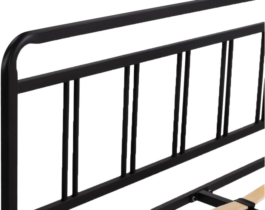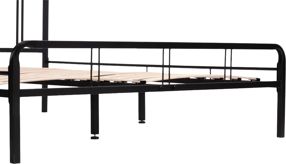 Материал каркаса - Металл; Материал ножек - Металл; Ортопедическое основание - в комплекте; Материал ортопедического основания - с деревянными ламелями; Цвет каркаса - Черный; Цвет ножек - Черный; Ширина - 143; Глубина - 206; Высота - 90,3; Размер спального места - 140 х 200; Длина кровати - 206; Ширина кровати - 143; Высота изножья - 46,3; Высота изголовья - 90,3;