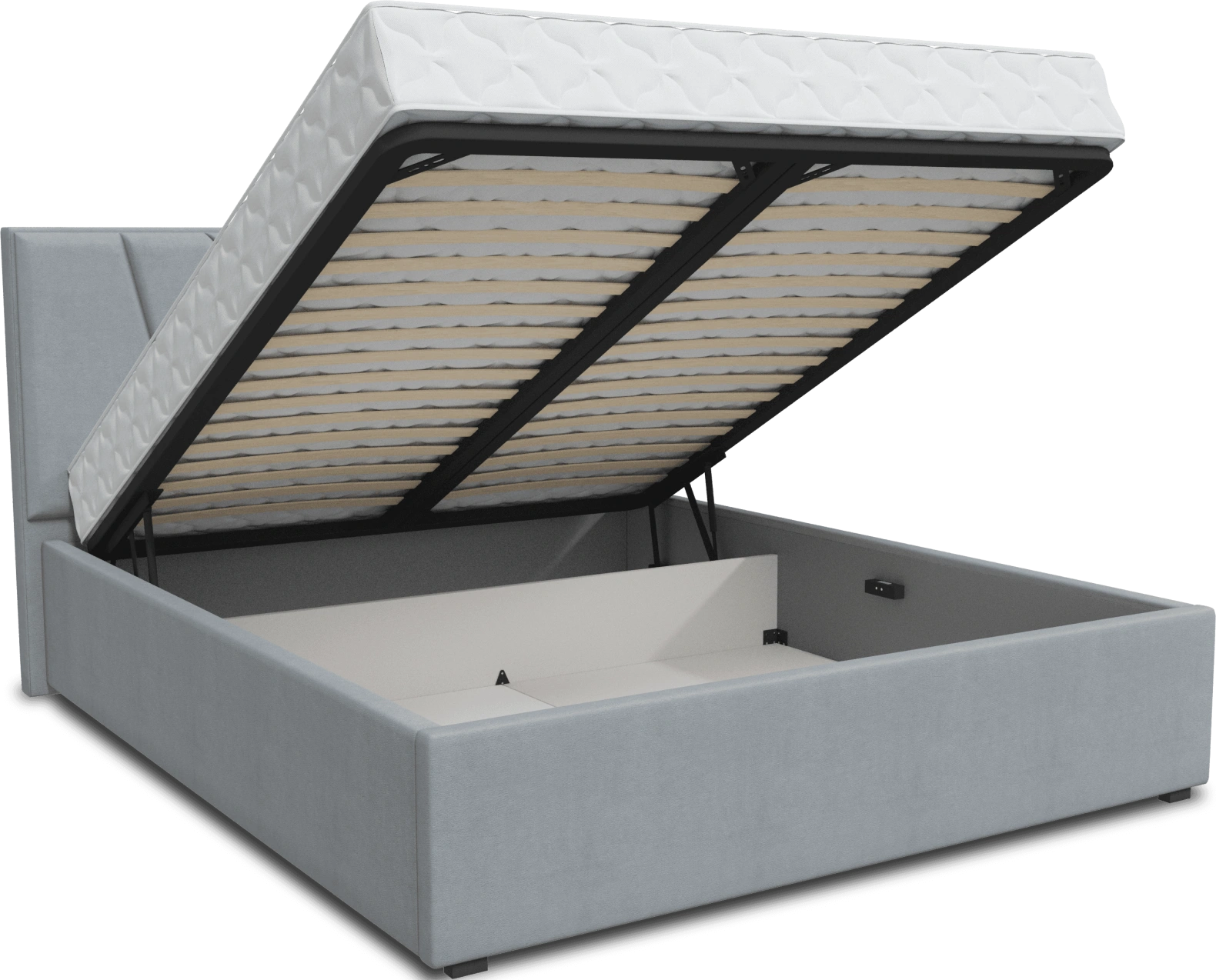 Интерьерная кровать из серии Рица с подъемным механизмом и ортопедическим основанием, а также настилом из ЛДСП для бельевого отсека. Пластиковая опора 2,80 см.