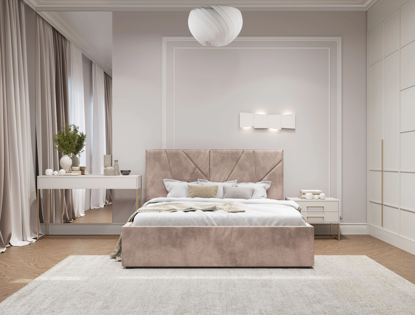 Интерьерная кровать из серии Рица с подъемным механизмом и ортопедическим основанием, а также настилом из ЛДСП для бельевого отсека. Пластиковая опора 2,80 см.
