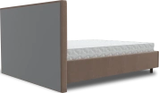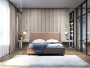 Интерьерная кровать из серии Рица с подъемным механизмом и ортопедическим основанием, а также настилом из ЛДСП для бельевого отсека. Металлическая опора 10 см.