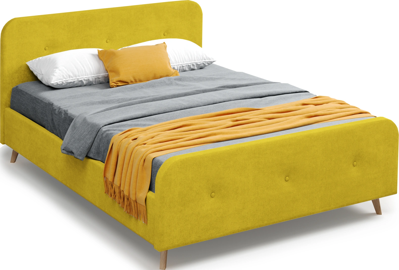 Изголовье имеет закругленный силуэт, обтянут велюровой тканью с пуговицами, что обеспечивает дополнительную мягкость и уют. Высокие стильные ножки из массива березы создадут ощущение легкости и воздушности.