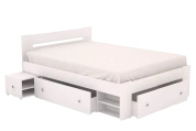 В комплекте: три ящика для белья, две выдвижные тумбы прикроватные. Матрас и Основание для кровати в комплект не входят.