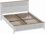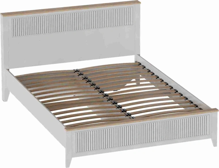 Кровать Валенсия выполнена из ЛДСП в комбинации Дуб натуральный светлый / Персидский жемчуг. УФ-фотопечать полосок на изголовье и изножье в обрамлении пластиковых молдингов придает изделию оригинальный стиль современной классики. Кроватное основание с деревянными ламелями встроено в конструкцию кровати. Высота опор 104 мм. На опорах размещены войлочные подпятники