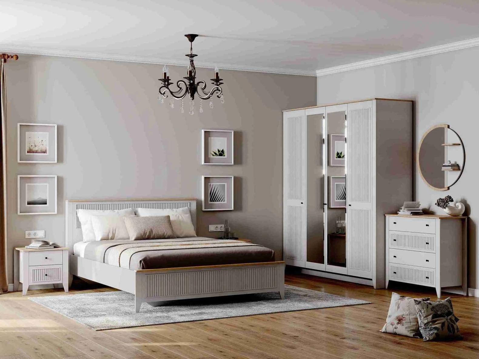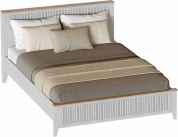 Кровать Валенсия выполнена из ЛДСП в комбинации Дуб натуральный светлый / Персидский жемчуг. УФ-фотопечать полосок на изголовье и изножье в обрамлении пластиковых молдингов придает изделию оригинальный стиль современной классики. Кроватное основание с деревянными ламелями встроено в конструкцию кровати. Высота опор 104 мм. На опорах размещены войлочные подпятники