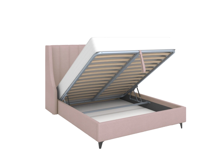 Крепление царги и спинки каркаса стыкуется на соединительных уголках. В основании кровати: металлическая горизонтальная траверса (металл) на болтах и планка торсионная продольная (нижняя под бельевым ящиком) на болтах + доп. опора. Такой способ соединения элементов кровати дает возможность многократной сборки-разборки. Металлические элементы конструктива кровати позволяют стабилизировать геометрию конструкции.