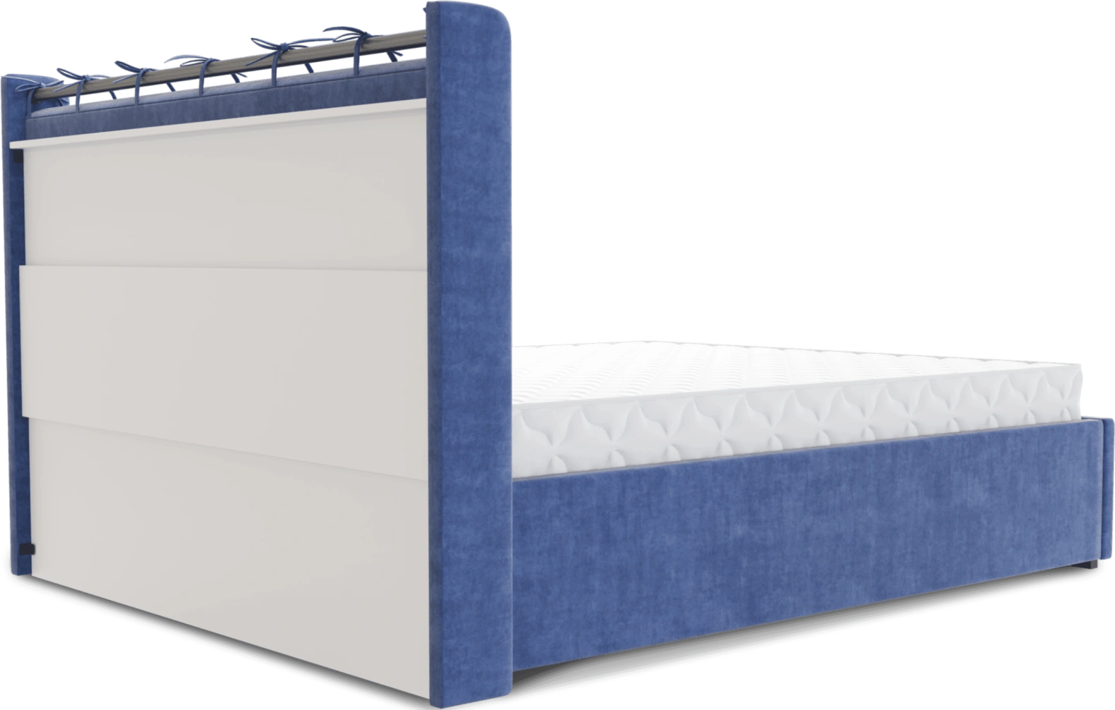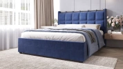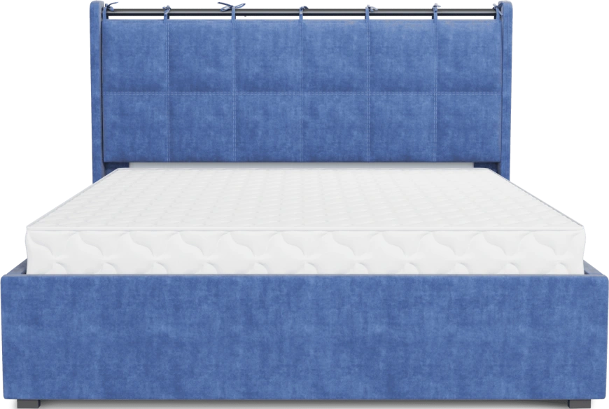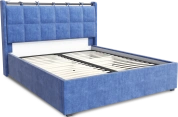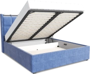 Интерьерная кровать из серии Женева с подъемным механизмом и цельносварным ортопедическим основанием, а также настилом из ЛДСП для бельевого отсека.