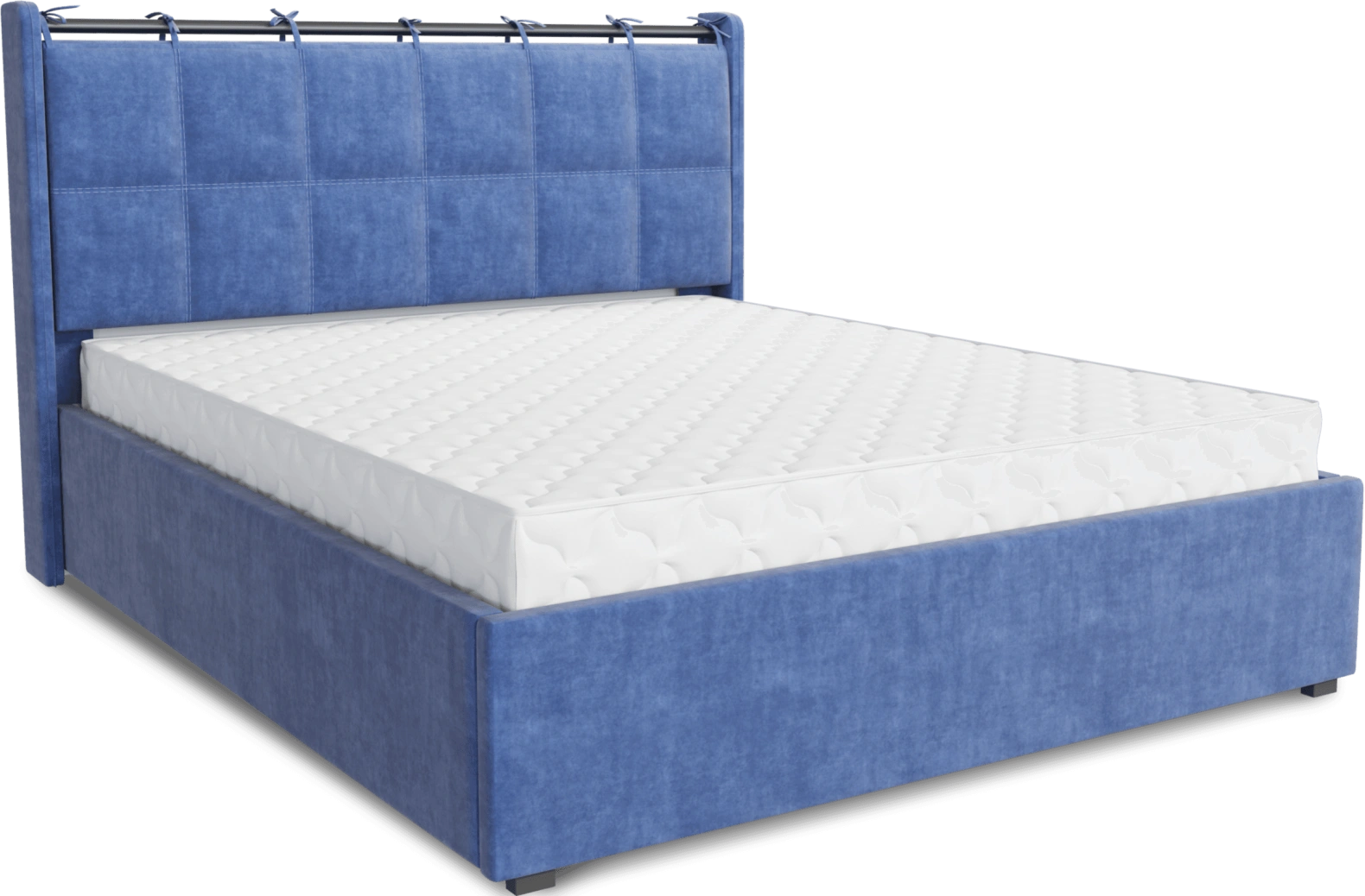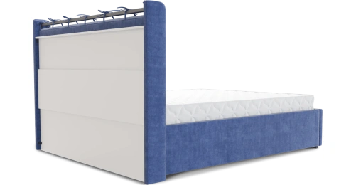 Интерьерная кровать из серии Женева с подъемным механизмом и цельносварным ортопедическим основанием, а также настилом из ЛДСП для бельевого отсека. Металлическая опора 10 см.