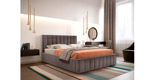 Кровать в мягкой обивке “Женева” является воплощением элегантной изысканности.