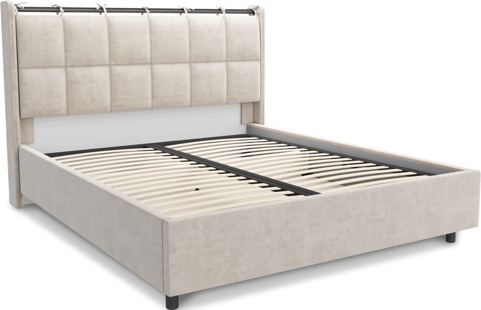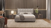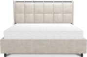 Интерьерная кровать из серии Женева с подъемным механизмом и цельносварным ортопедическим основанием, а также настилом из ЛДСП для бельевого отсека. Металлическая опора 10 см.