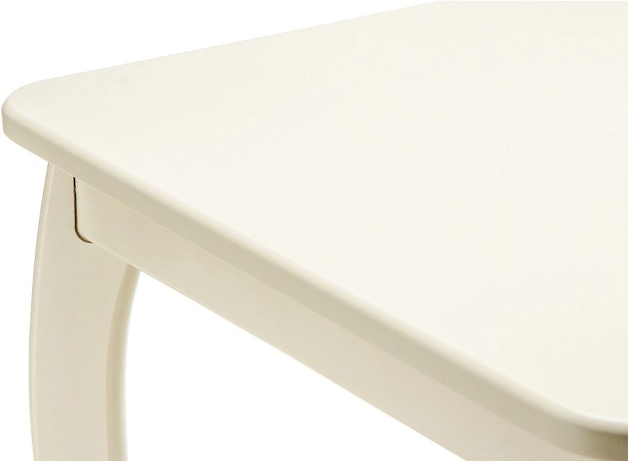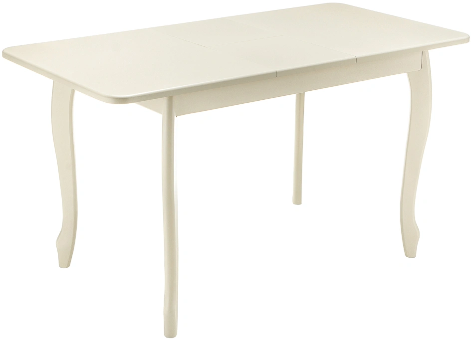 Материал каркаса - Массив березы; Материал ножек - Массив березы; Материал столешницы - МДФ / шпон; Цвет каркаса - Слоновая кость; Цвет ножек - Слоновая кость; Цвет столешницы - Слоновая кость; Цвет подстолья - Слоновая кость; Ширина - 67; Высота - 76; Длина стола в разложенном виде - 136; Длина - 106;