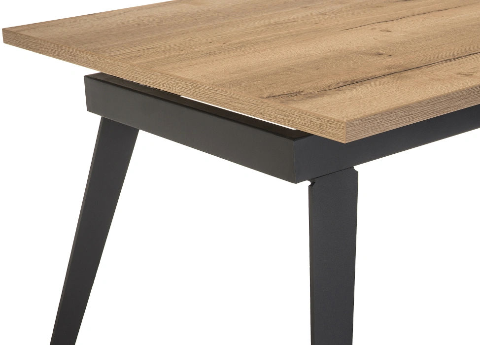 Стол Кхал представляет собой современную мебель в стиле Лофт. Каркас и ножки выполнены из металла, что обеспечивает прочность и устойчивость конструкции. Прямоугольная столешница выполнена из ЛДСП толщиной 25 мм, что делает ее прочной и устойчивой к деформации. Столешница раздвигается и вставляется по середине вставка, что позволяет легко увеличить размер стола и комфортно разместить большее количество гостей. Стильный дизайн стола Кхал идеально подойдет для любого интерьера в стиле Лофт.