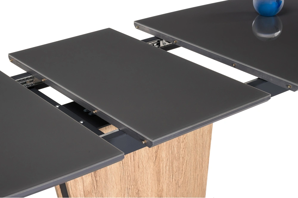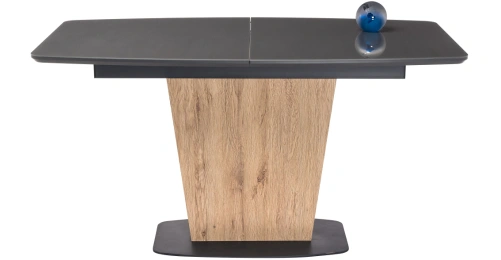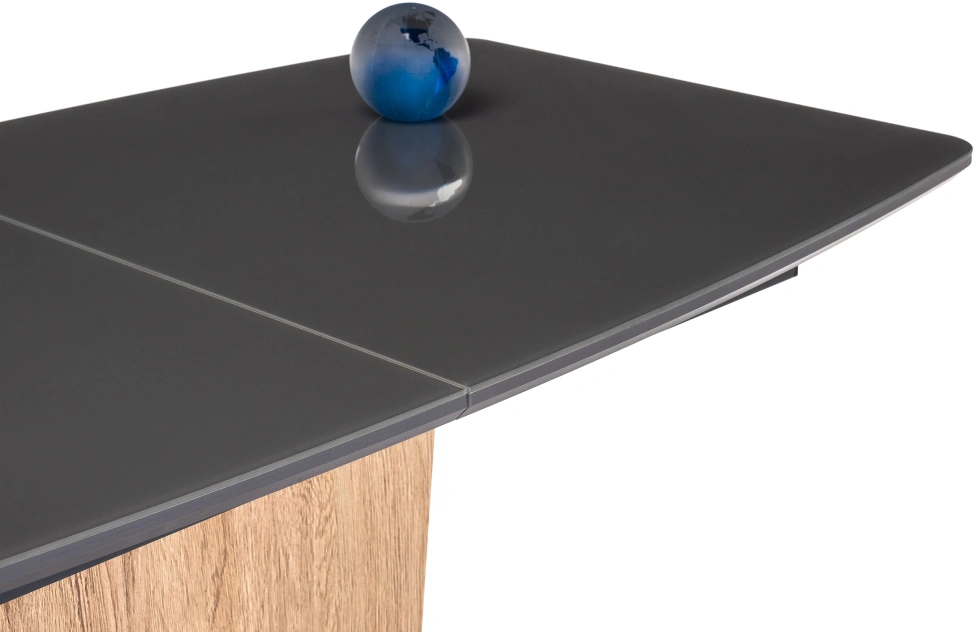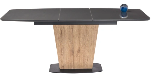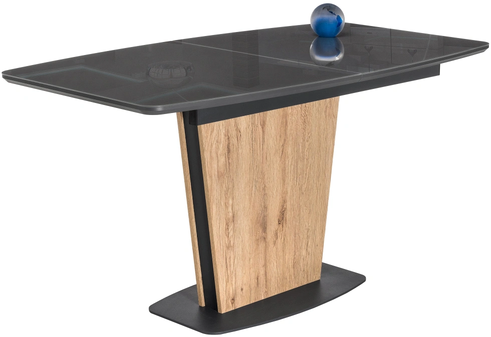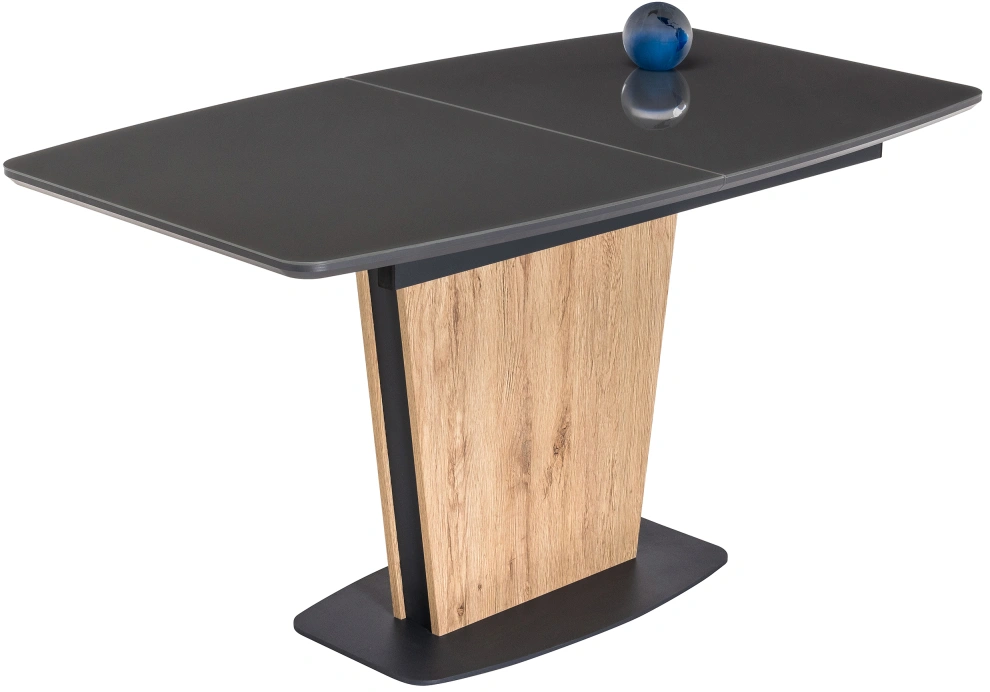 Стол на тумбе Теон имеет раскладывающуюся столешницу, что позволяет увеличить его длину до 180 см. Это очень удобно для тех, кто часто приглашает гостей на обед или ужин.