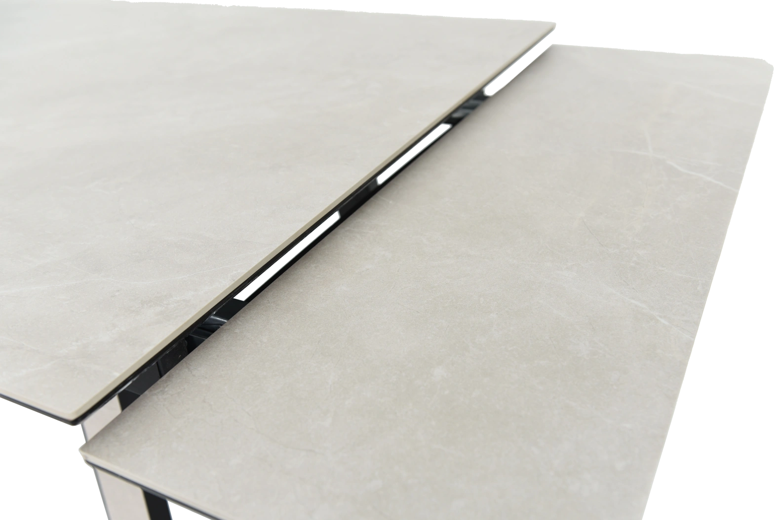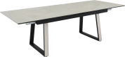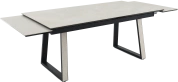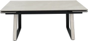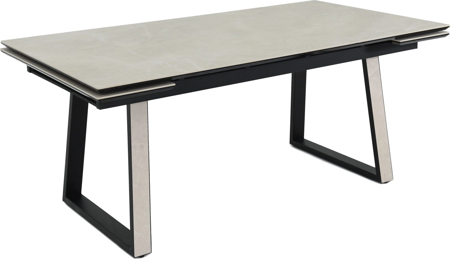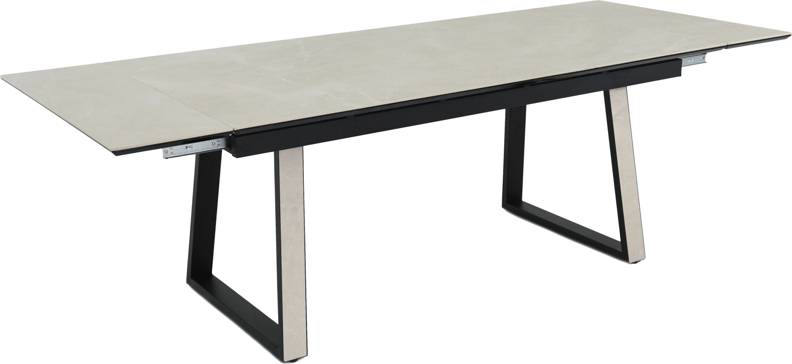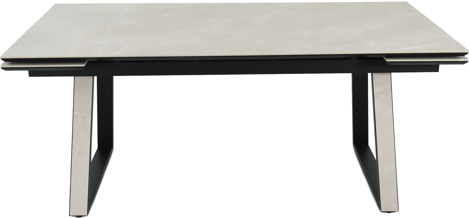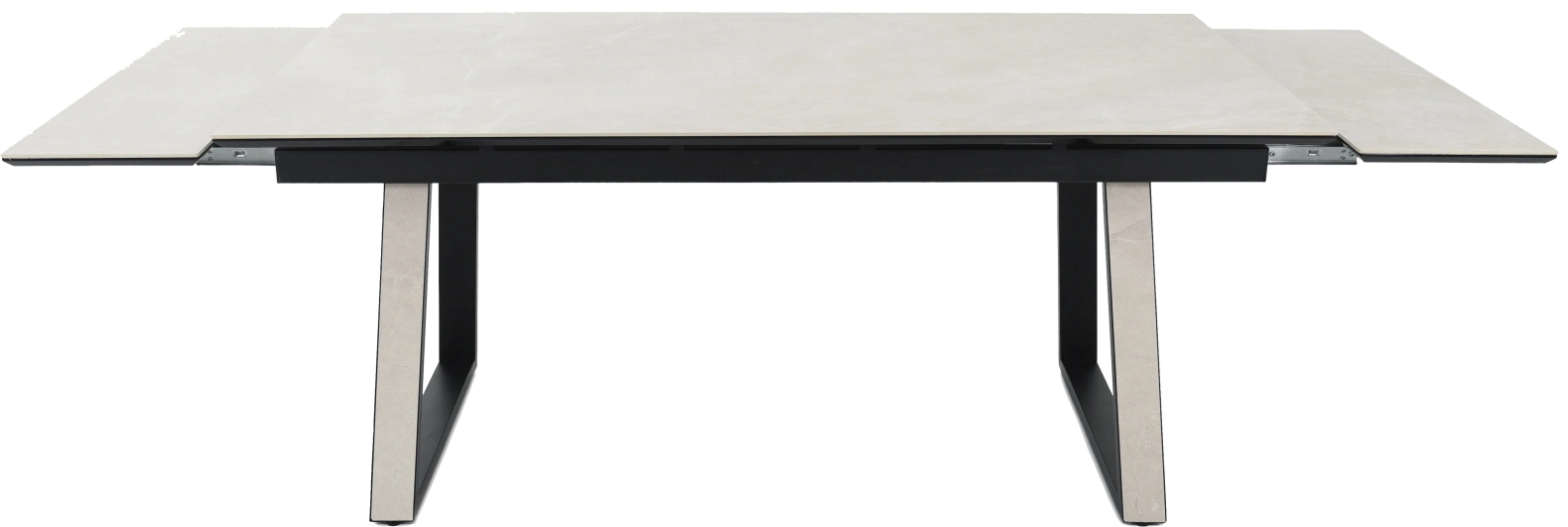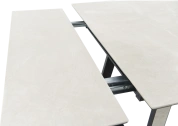Кухонный стол «Monaco» Quadro, со столешницей из искусственного камня, материал - керамогранит Bayona ivory natural, на черных металлических опорах. Отличительной чертой этого стола являются боковые вставки для раскладки стола. Такой механизм успешно себя зарекомендовал и пользуется постоянным спросом у наших покупателей. На вставках опор, также используется керамогранит. Стоит отметить еще одну особенность стола «Monaco» Quadro — это выбор, как со столешницей из керамогранита, так и покрытия из закаленного, матового стекла OPTI. На столы с керамикой, между столешницей и вставкой, приклеивается силиконовая полоска, она необходима для сохранения целостности керамики при трансформации стола. Ее необходимо оставить!