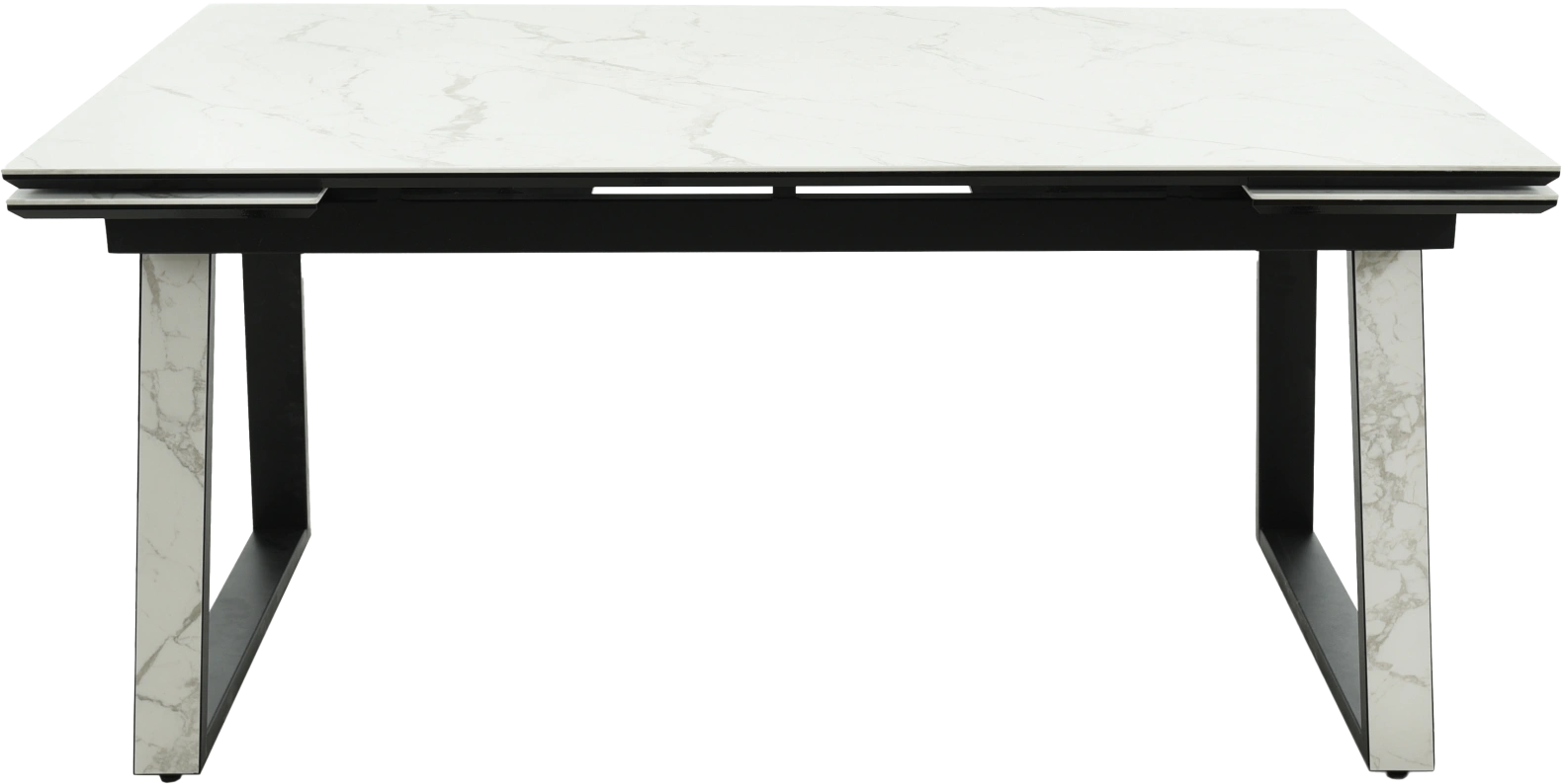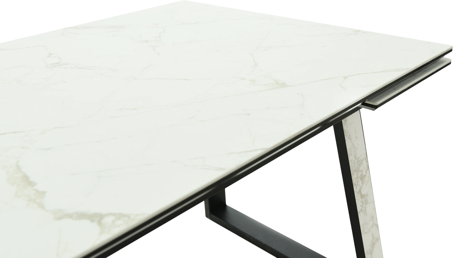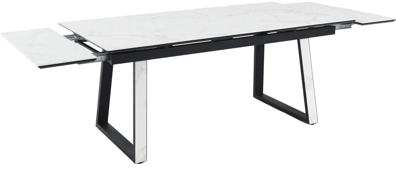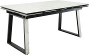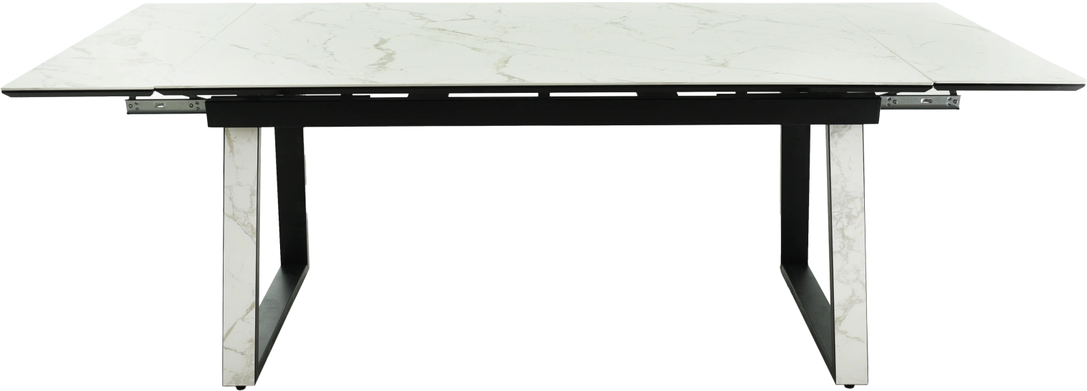 Кухонный стол «Monaco» Quadro, со столешницей из искусственного камня, материал - керамогранит Calcata vaglioro, на черных металлических опорах. Отличительной чертой этого стола являются боковые вставки для раскладки стола. Такой механизм успешно себя зарекомендовал и пользуется постоянным спросом у наших покупателей. На вставках опор, также используется керамогранит. Стоит отметить еще одну особенность стола «Monaco» Quadro — это выбор, как со столешницей из керамогранита, так и покрытия из закаленного, матового стекла OPTI. На столы с керамикой, между столешницей и вставкой, приклеивается силиконовая полоска, она необходима для сохранения целостности керамики при трансформации стола.