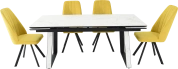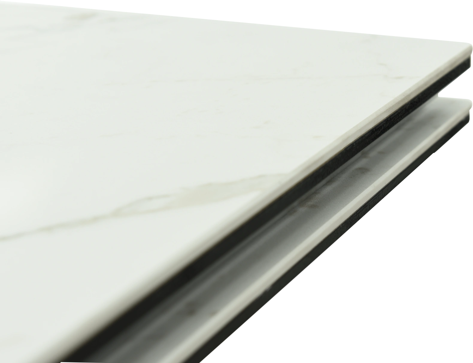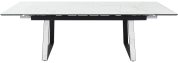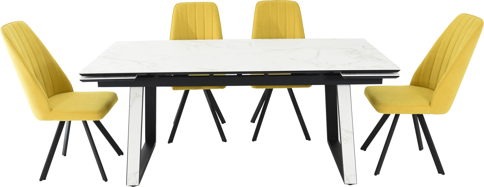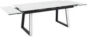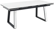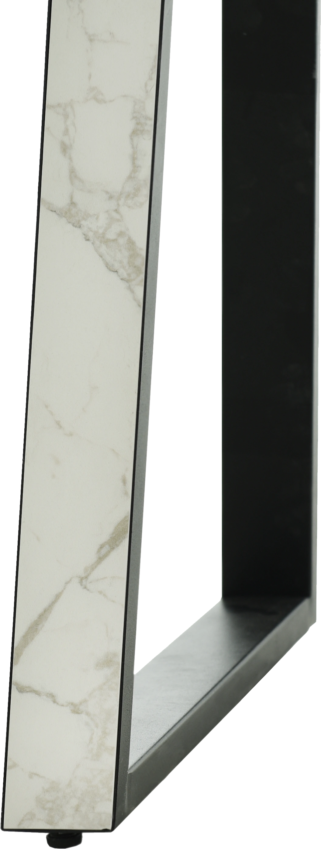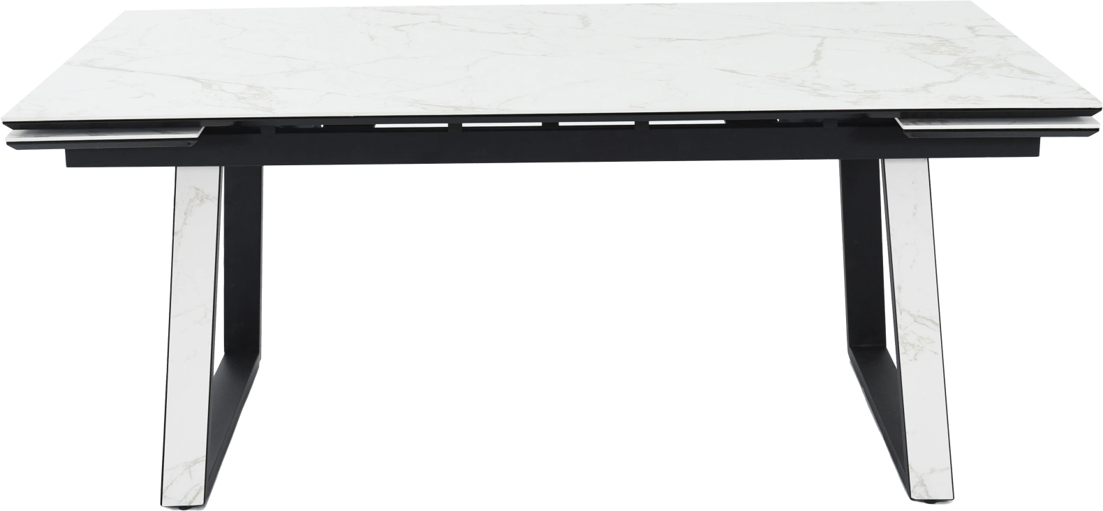 Кухонный стол «Monaco» Quadro, со столешницей из искусственного камня, материал - керамогранит Calcata vaglioro, на черных металлических опорах. Отличительной чертой этого стола являются боковые вставки для раскладки стола. Такой механизм успешно себя зарекомендовал и пользуется постоянным спросом у наших покупателей. На вставках опор, также используется керамогранит. Стоит отметить еще одну особенность стола «Monaco» Quadro — это выбор, как со столешницей из керамогранита, так и покрытия из закаленного, матового стекла OPTI. На столы с керамикой, между столешницей и вставкой, приклеивается силиконовая полоска, она необходима для сохранения целостности керамики при трансформации стола.
