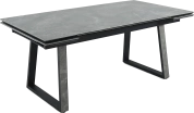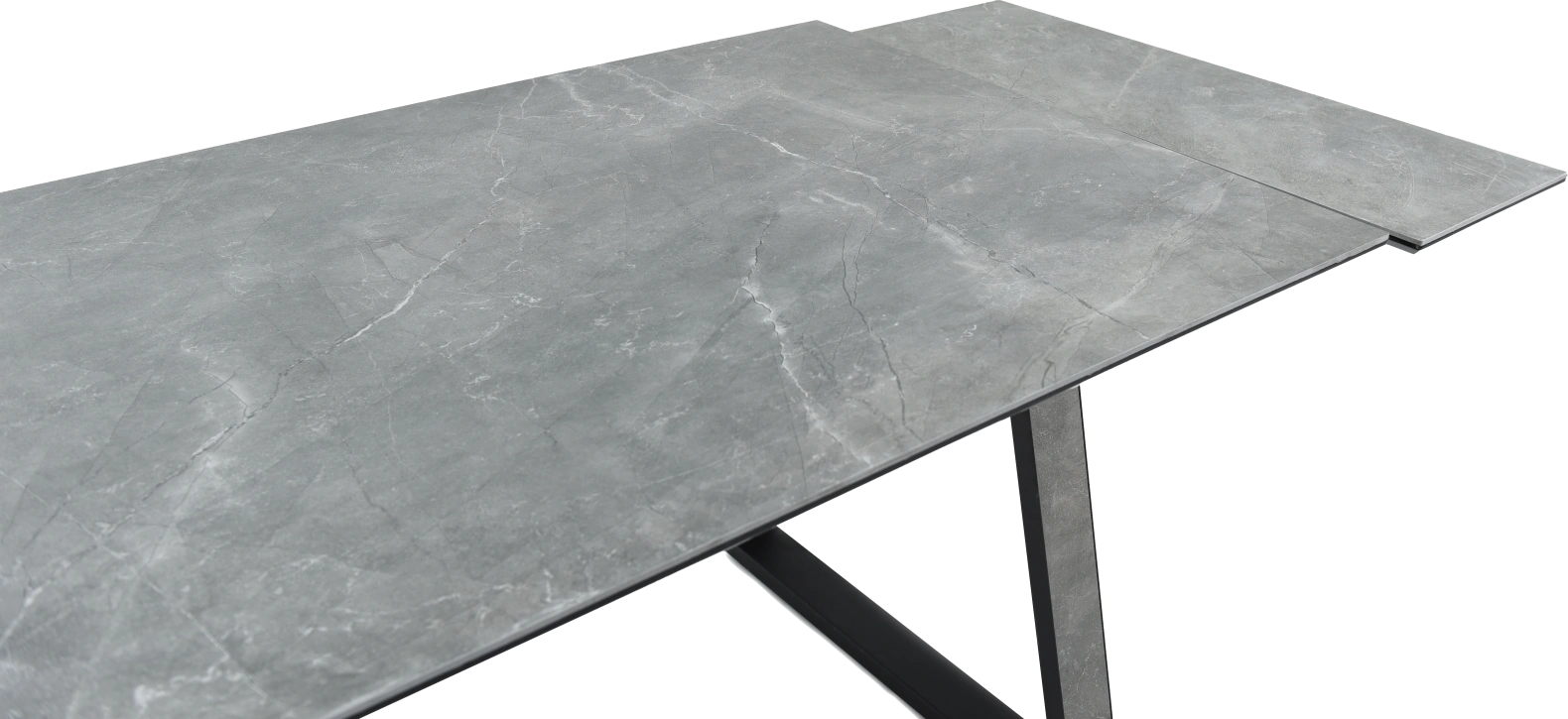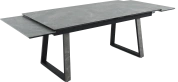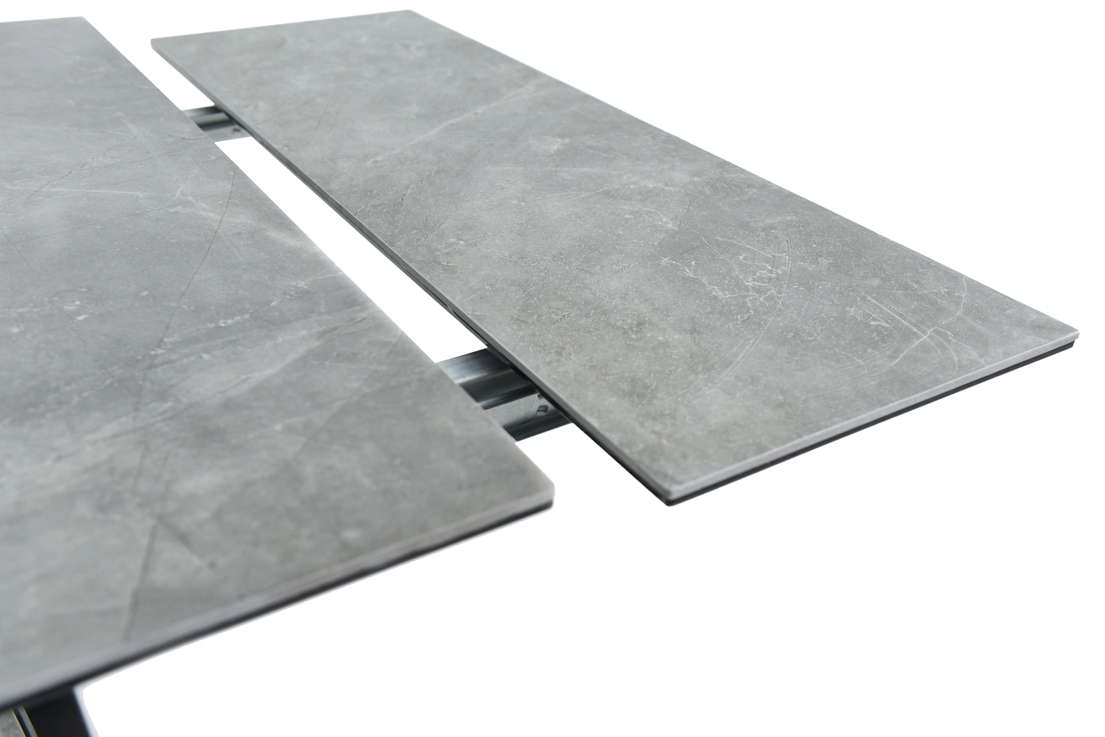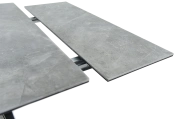 Кухонный стол «Monaco» Quadro, со столешницей из искусственного камня, материал - керамогранит Bayona Grey natural, на черных металлических опорах. Отличительной чертой этого стола являются боковые вставки для раскладки стола. Такой механизм успешно себя зарекомендовал и пользуется постоянным спросом у наших покупателей. На вставках опор, также используется керамогранит. Стоит отметить еще одну особенность стола «Monaco» Quadro — это выбор, как со столешницей из керамогранита, так и покрытия из закаленного, матового стекла OPTI. На столы с керамикой, между столешницей и вставкой, приклеивается силиконовая полоска, она необходима для сохранения целостности керамики при трансформации стола.