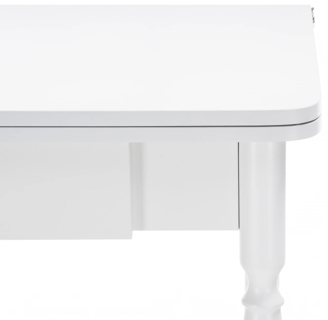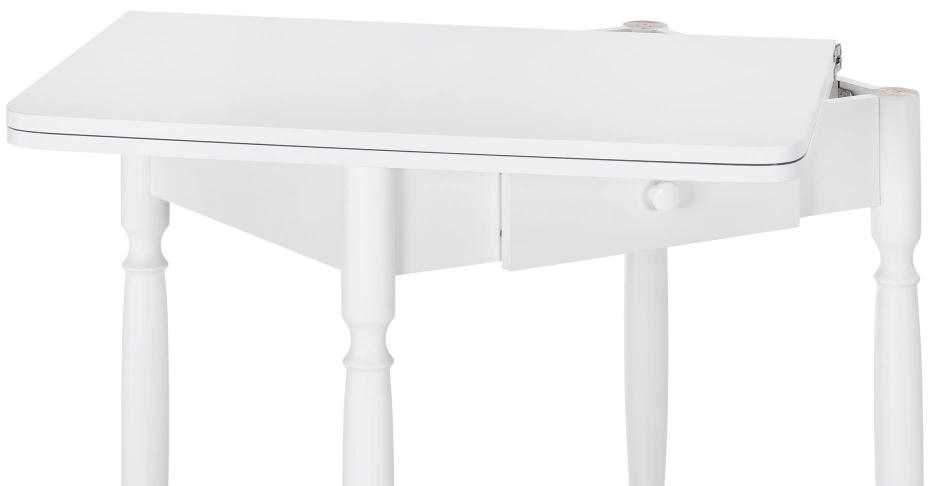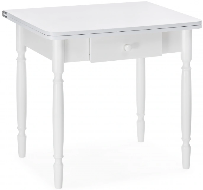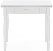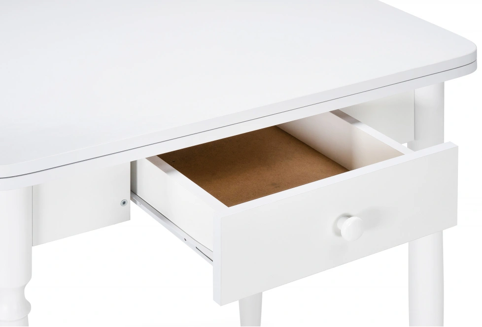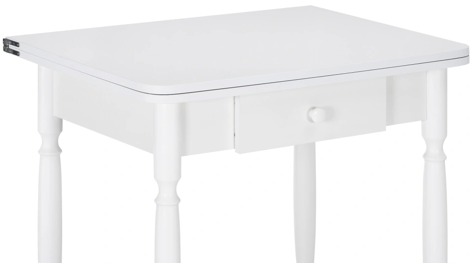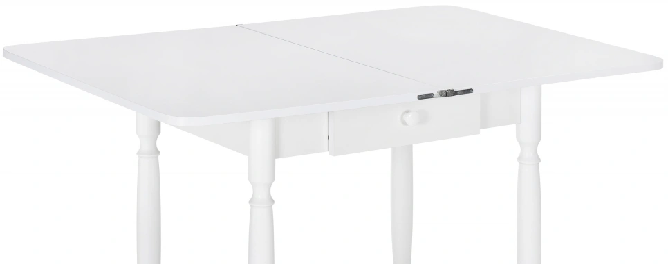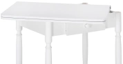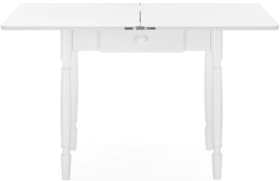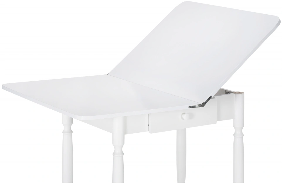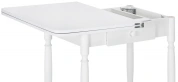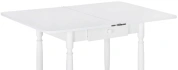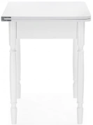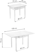 Расстояние между ножками по ширине: 41 см. Материал каркаса - Массив дерева; Материал ножек - Массив дерева; Материал столешницы - ЛДСП; Цвет каркаса - Белый; Цвет ножек - Белый; Цвет столешницы - Белый; Цвет подстолья - Белый; Ширина - 79; Высота - 75; Длина стола в разложенном виде - 120; Длина - 60;