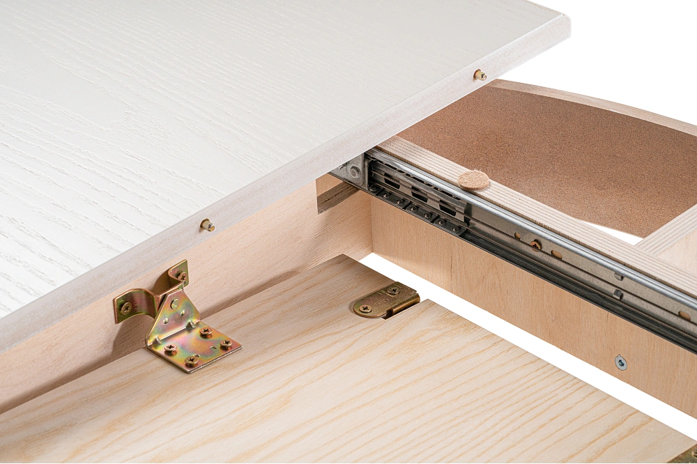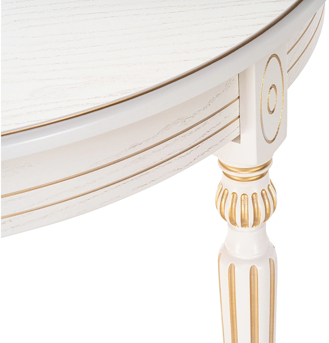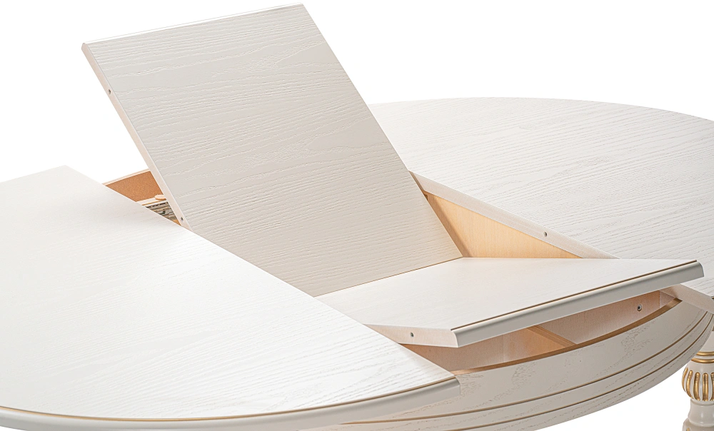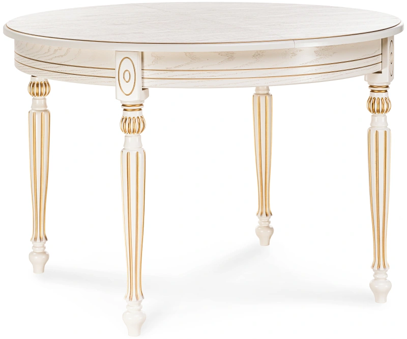 Толщина столешницы: 2 см. Материал каркаса - Массив бука; Материал ножек - Массив бука; Материал столешницы - Шпон / МДФ; Цвет каркаса - Молочный; Цвет ножек - Молочный; Цвет столешницы - Молочный; Цвет подстолья - Молочный; Ширина - 110; Высота - 77; Длина стола в разложенном виде - 140; Длина - 110;