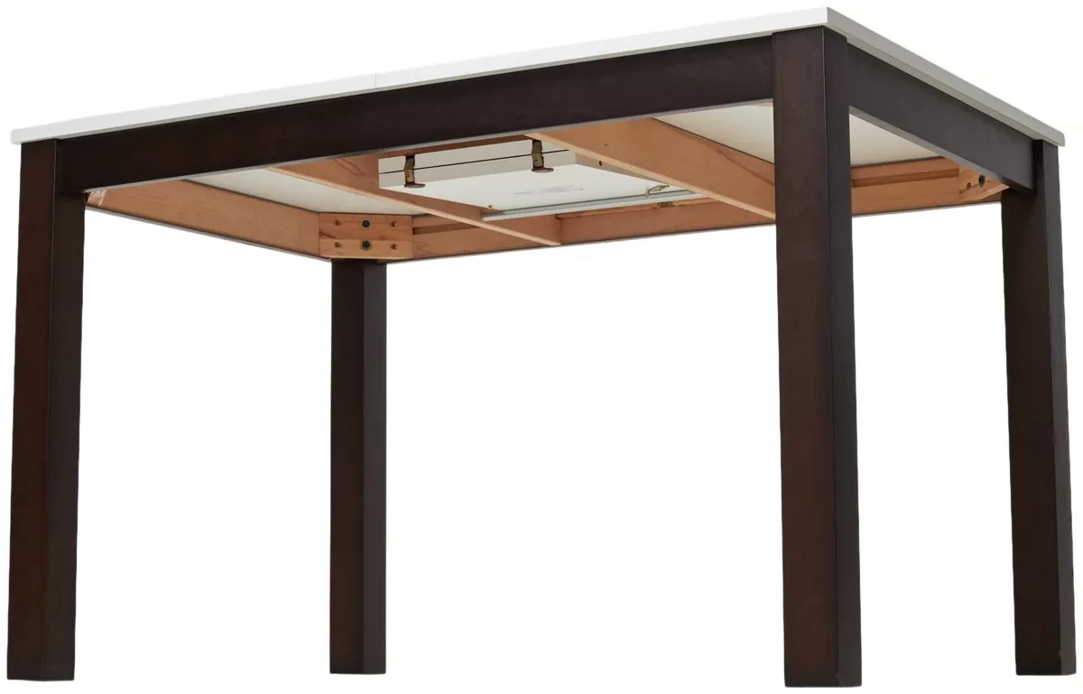 Ножки стола выполнены из массива бука в цвете темный орех, столешница - мдф ламинированный. Раскладной. Вставка "бабочка" в центре столешницы. Посадочных мест - 6.