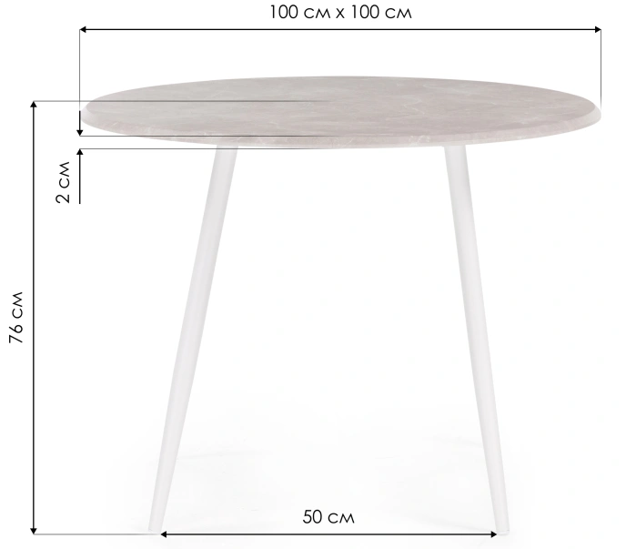 Кухонный стол Абилин 90x76, МДФ, мрамор светло-серый, каркас белый матовый