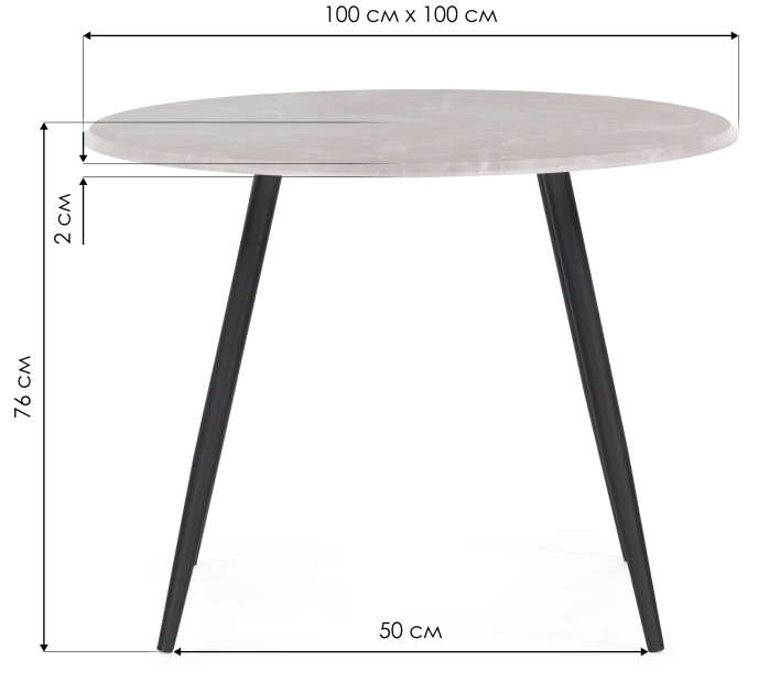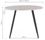 Кухонный стол Абилин 100x76, МДФ, мрамор светло-серый, каркас черный матовый
