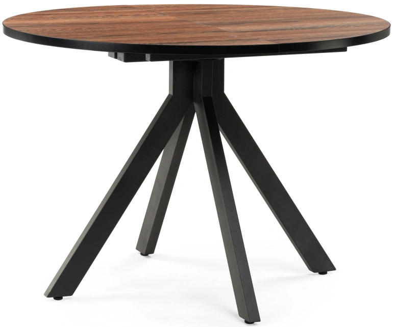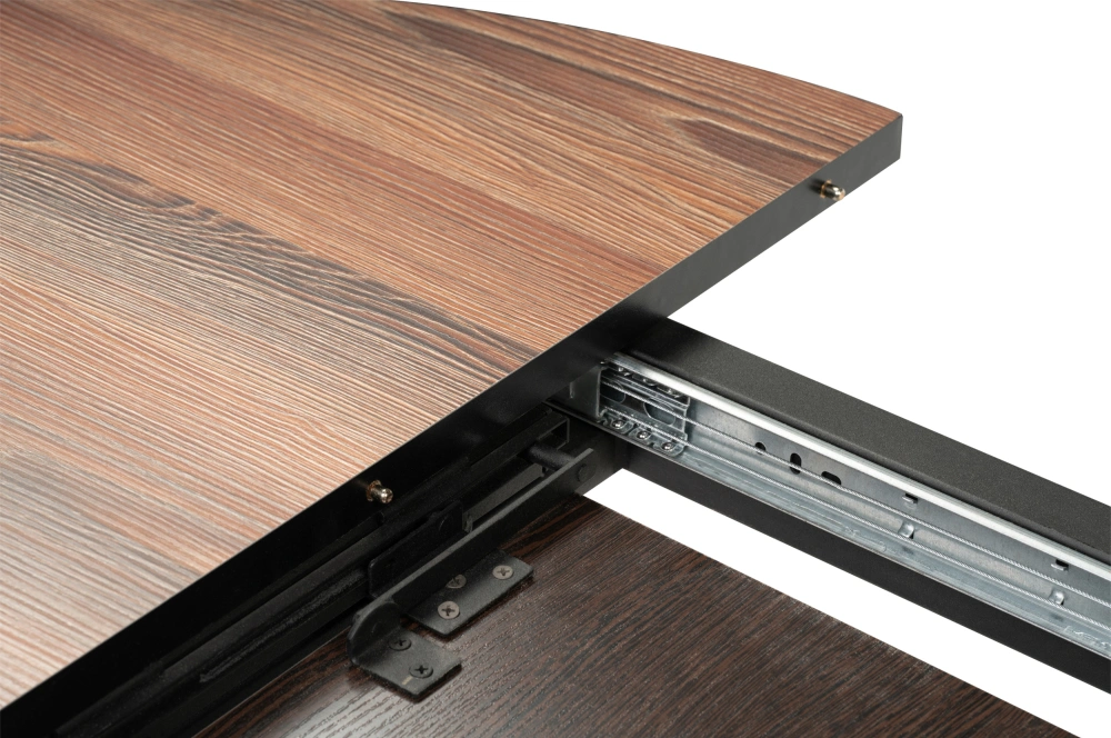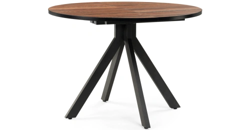 Толщина столешницы: 2,5 см. Материал каркаса - Металл; Материал ножек - Металл; Материал столешницы - ЛДСП; Цвет каркаса - Черный; Цвет ножек - Черный; Цвет столешницы - Орех; Цвет подстолья - Орех; Ширина - 100; Высота - 75; Длина стола в разложенном виде - 130; Длина - 100;