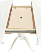 Материал изготовления подстолья: МДФ с покрытием из шпона. Ножка круглого раздвижного стола изготовлены из массива и совпадает с цветом столешницы.