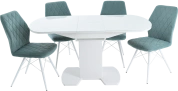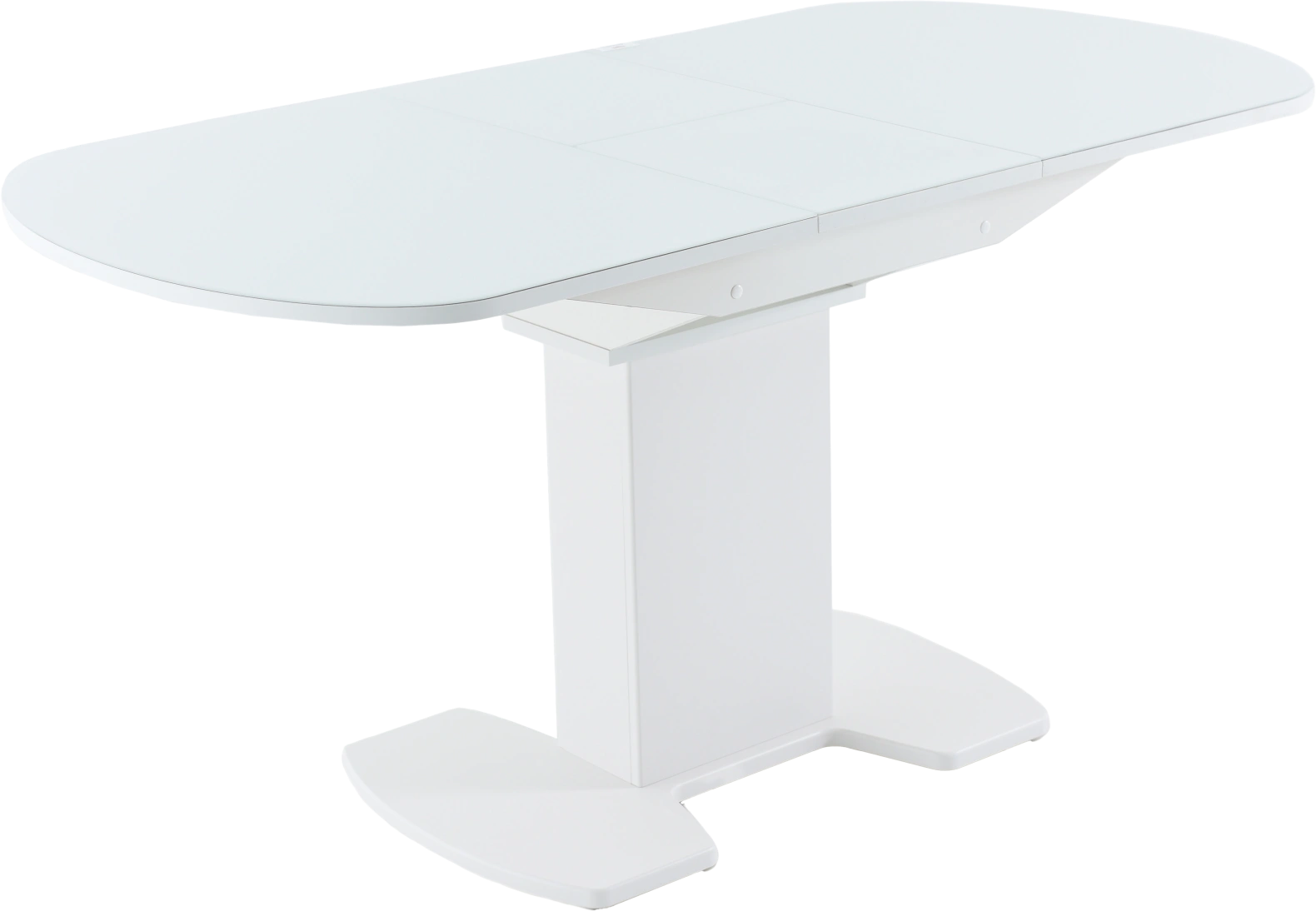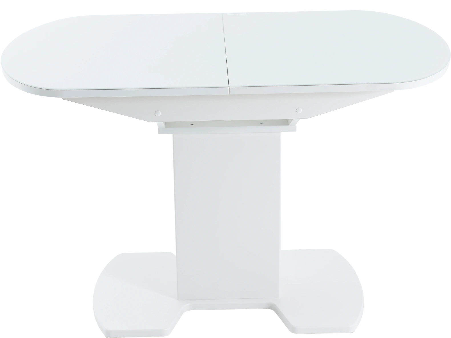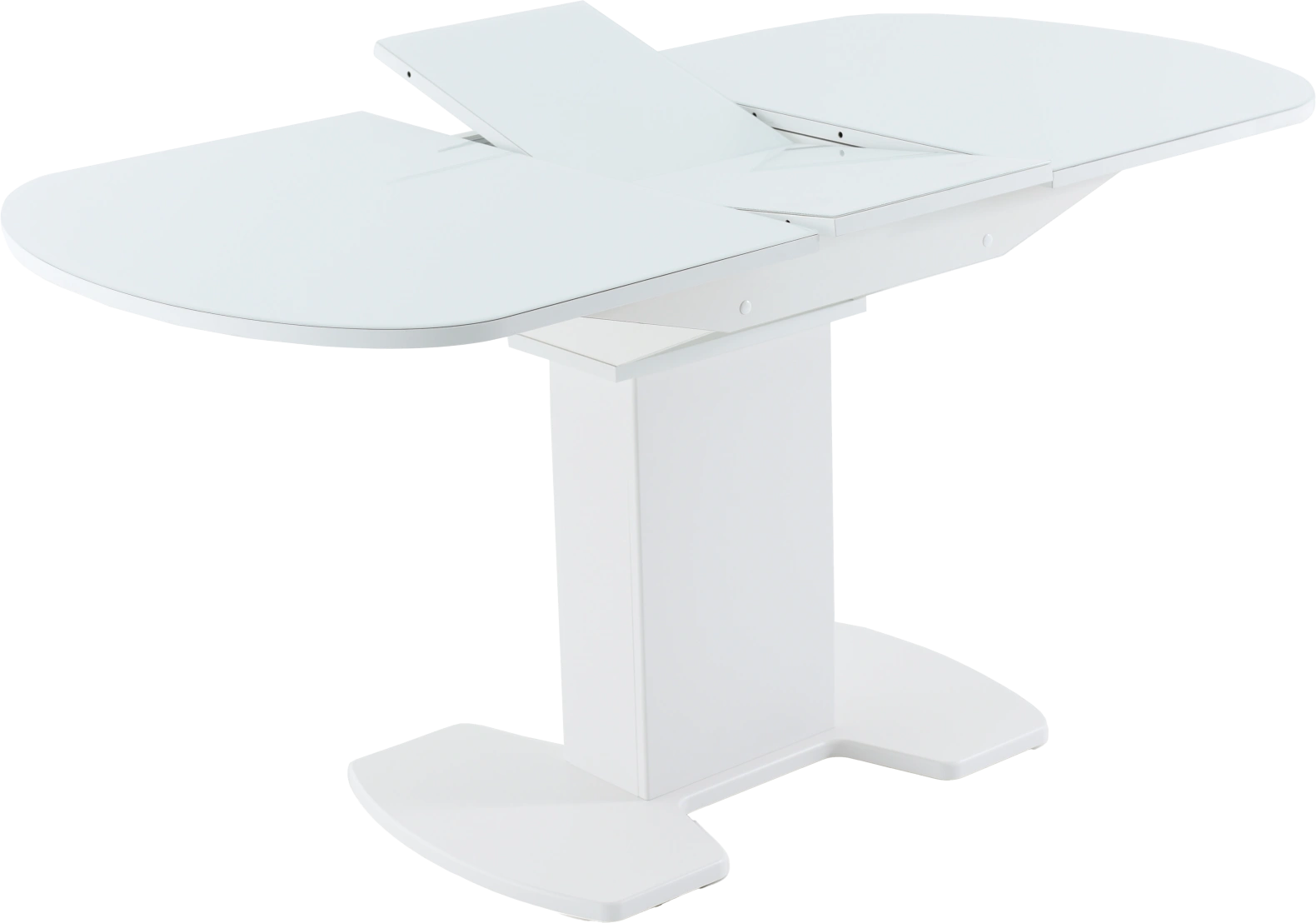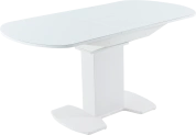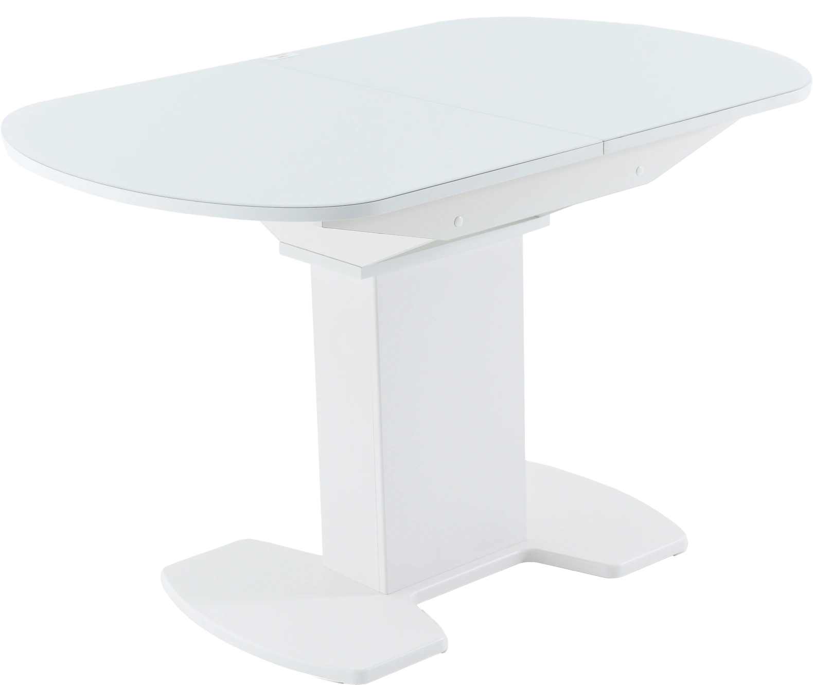 Отличительной чертой этого стола является одна опора, выполненная из МДФ в цвете подстолья. К опоре крепится непосредственно столешница. Механизм раскладки — бабочка, причем покрытие вкладыша так же изготовлено из закалённого стекла, что позволяет столу не терять эстетической окраски даже в разложенном варианте. Стоит отметить еще одну особенность стола «Корсика» — это выбор покрытия из закаленного стекла, оно может быть как глянцевым (гладким), так и матовым.