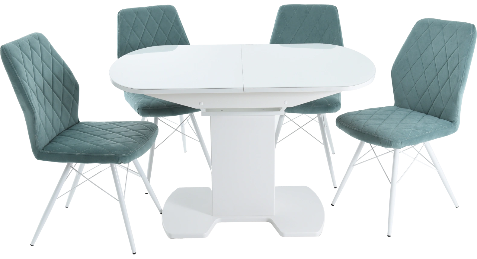 Кухонный стол «Корсика» со стеклянной столешницей полностью белого цвета.