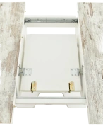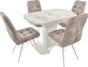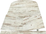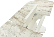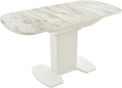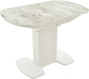 Отличительной чертой этого стола является одна опора, выполненная из МДФ в цвете подстолья. К опоре крепится непосредственно столешница. Стол раздвижной, механизм раскладки — бабочка, причем покрытие вкладыша так же изготовлено из пластика, что позволяет столу не терять эстетической окраски даже в разложенном варианте. Стоит отметить еще одну особенность стола «Корсика» — это выбор покрытия.