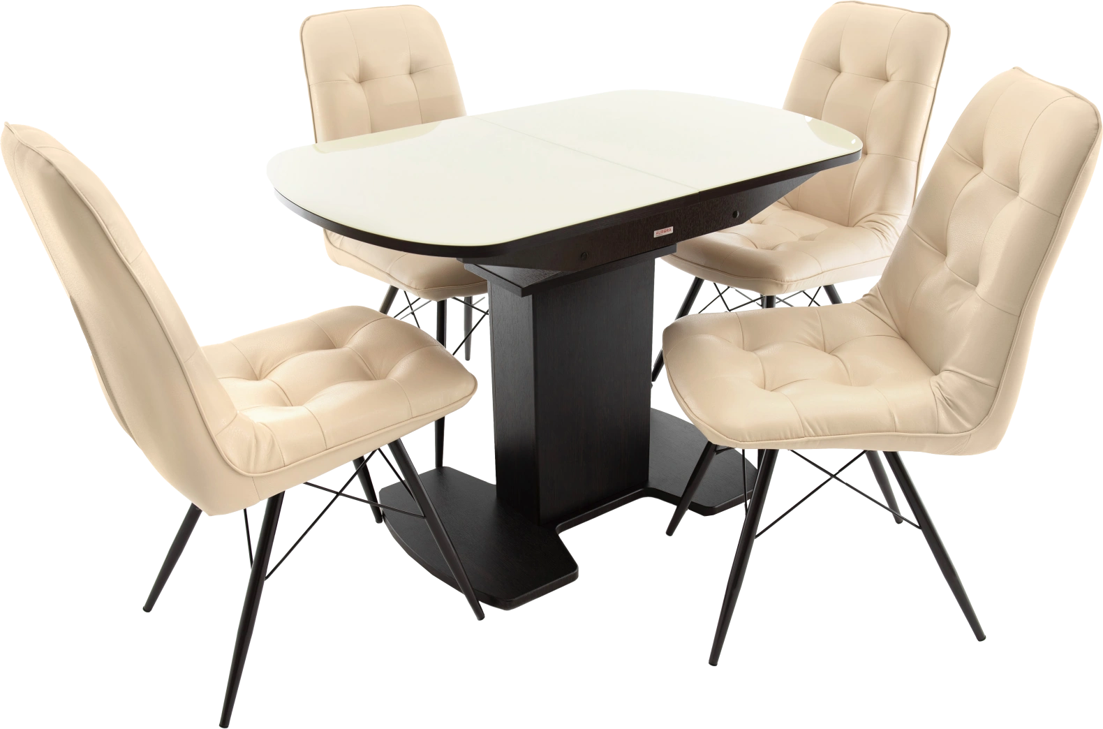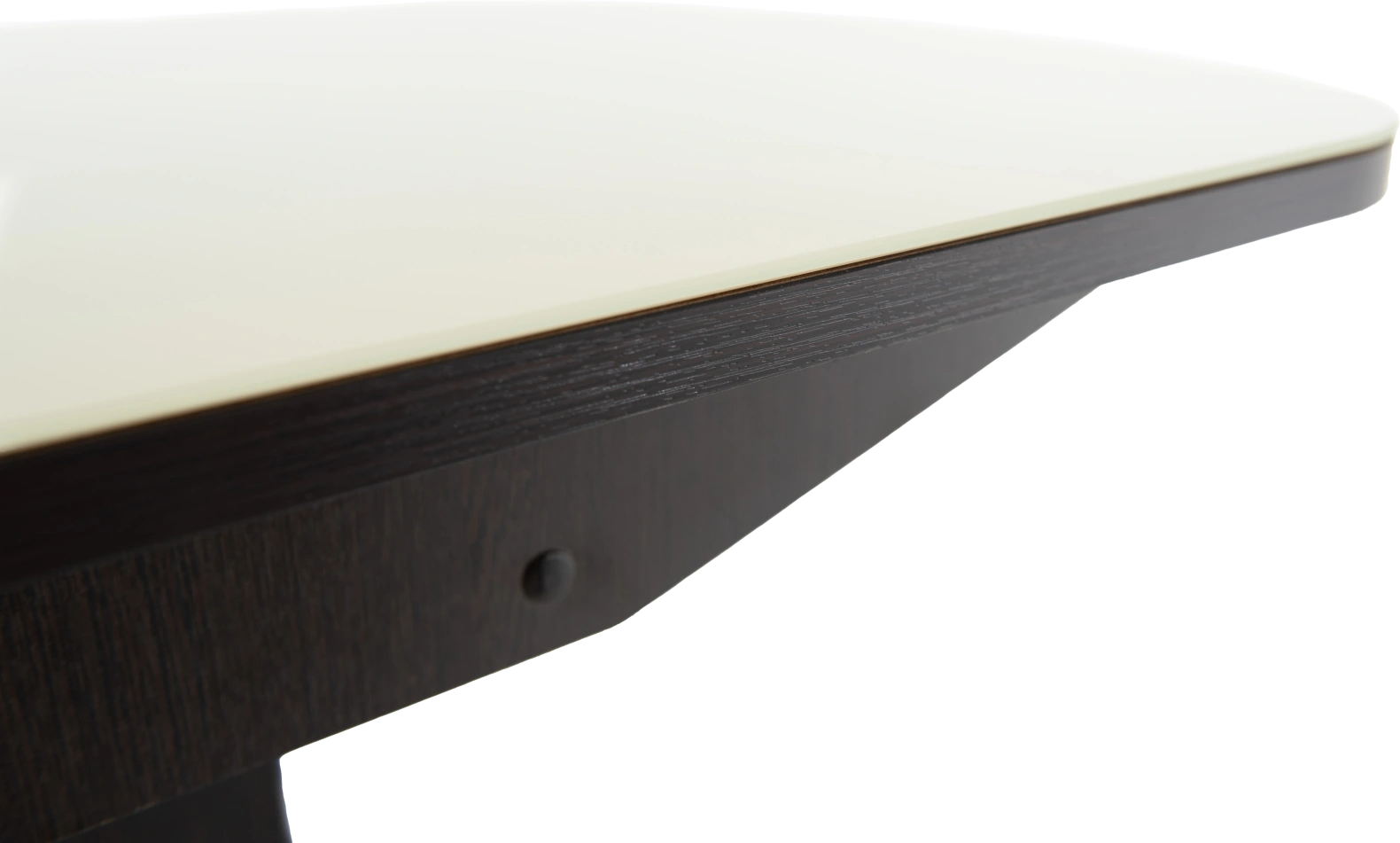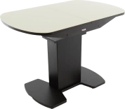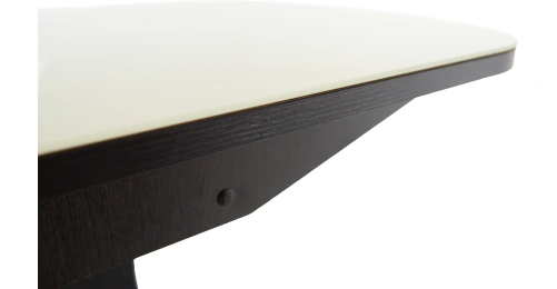 Кухонный стол «Корсика» со стеклянной столешницей молочного цвета и опорой цвета венге.