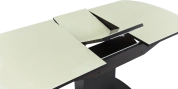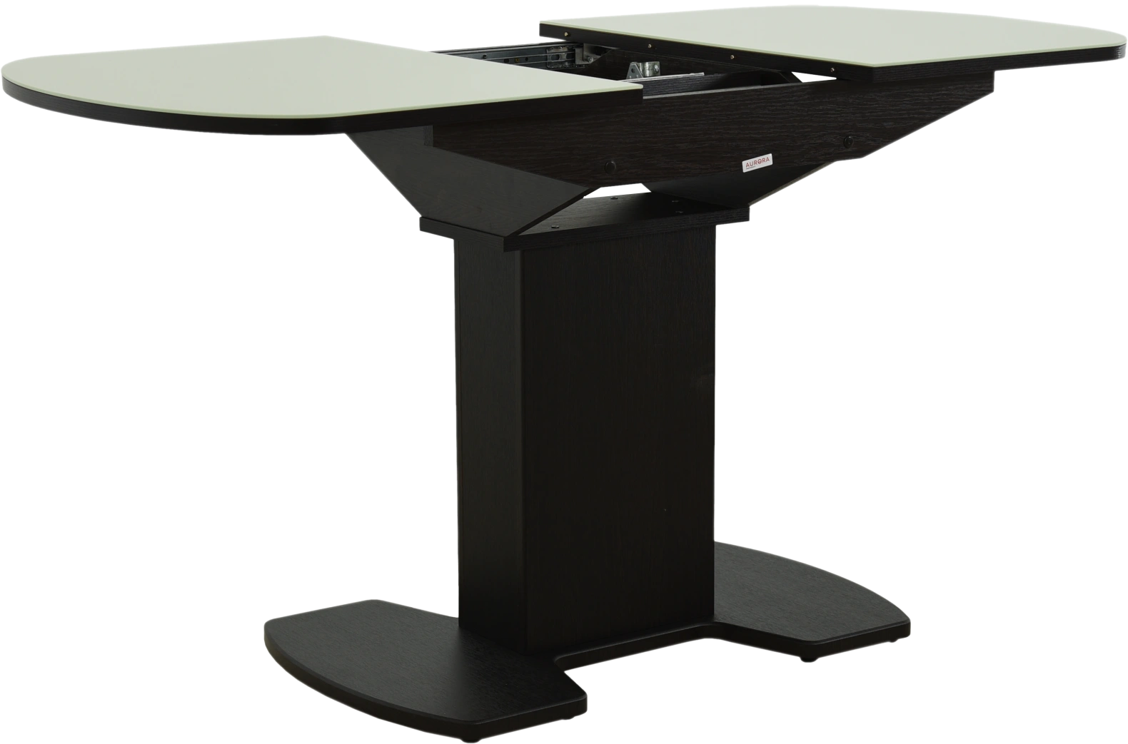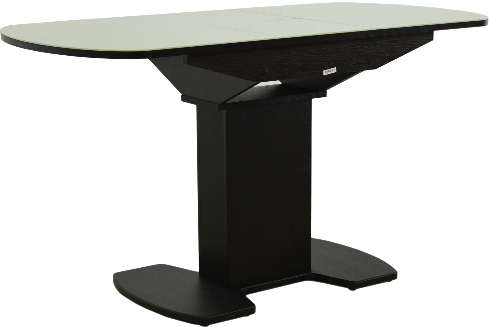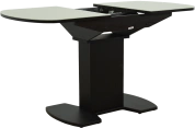 Отличительной чертой этого стола является одна опора, выполненная из МДФ в цвете подстолья. К опоре крепится непосредственно столешница. Механизм раскладки — бабочка, причем покрытие вкладыша так же изготовлено из закалённого стекла, что позволяет столу не терять эстетической окраски даже в разложенном варианте. Стоит отметить еще одну особенность стола «Корсика» — это выбор покрытия из закаленного стекла, оно может быть как глянцевым (гладким), так и матовым.