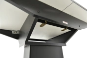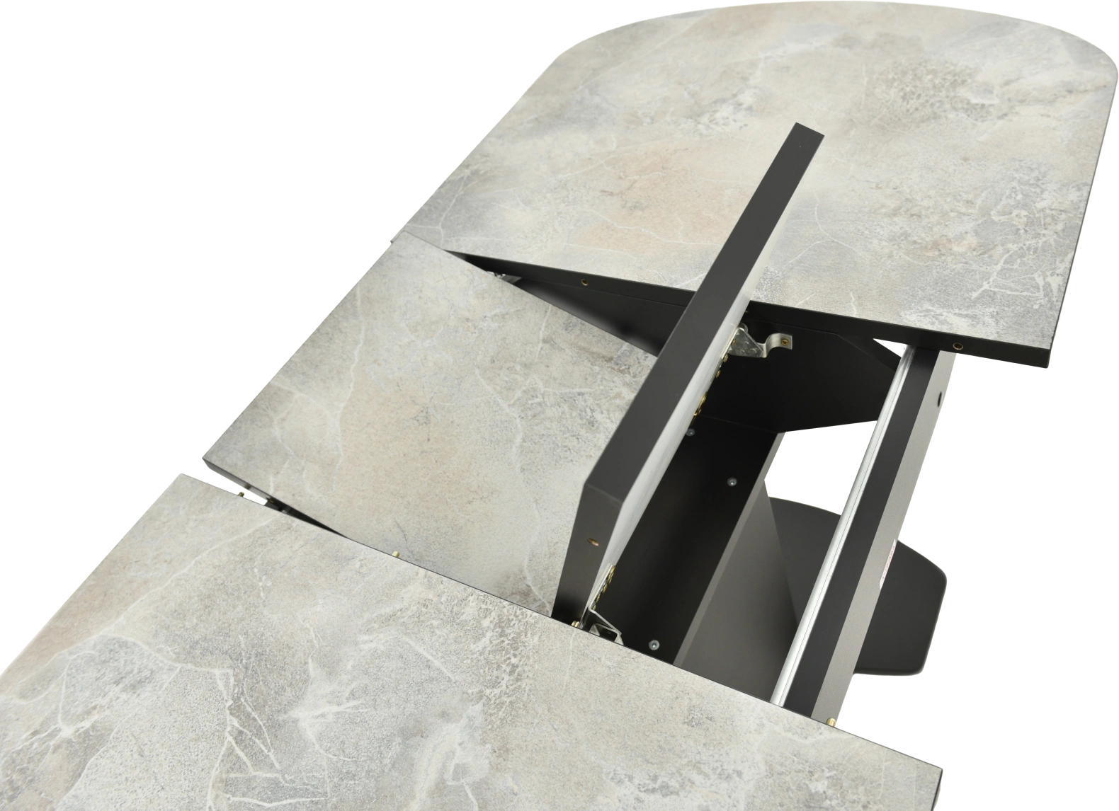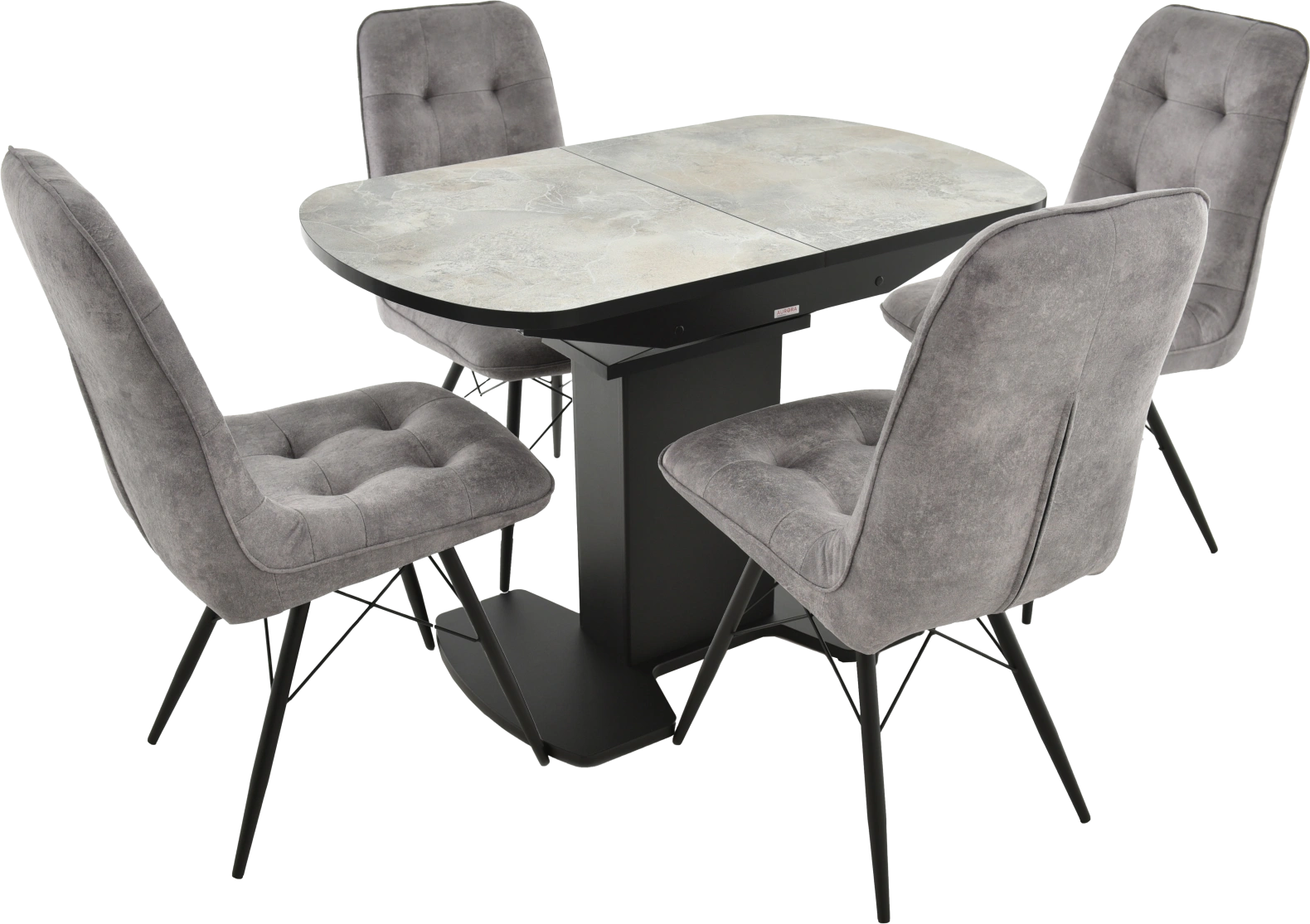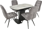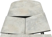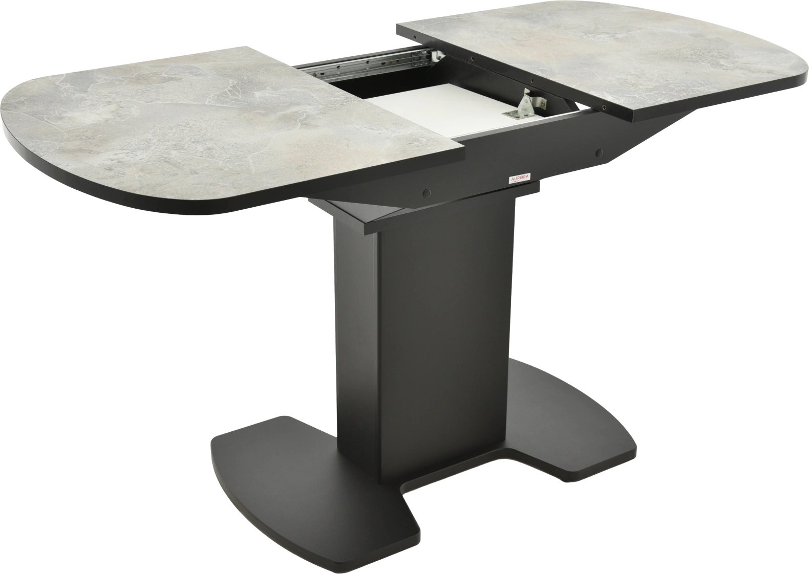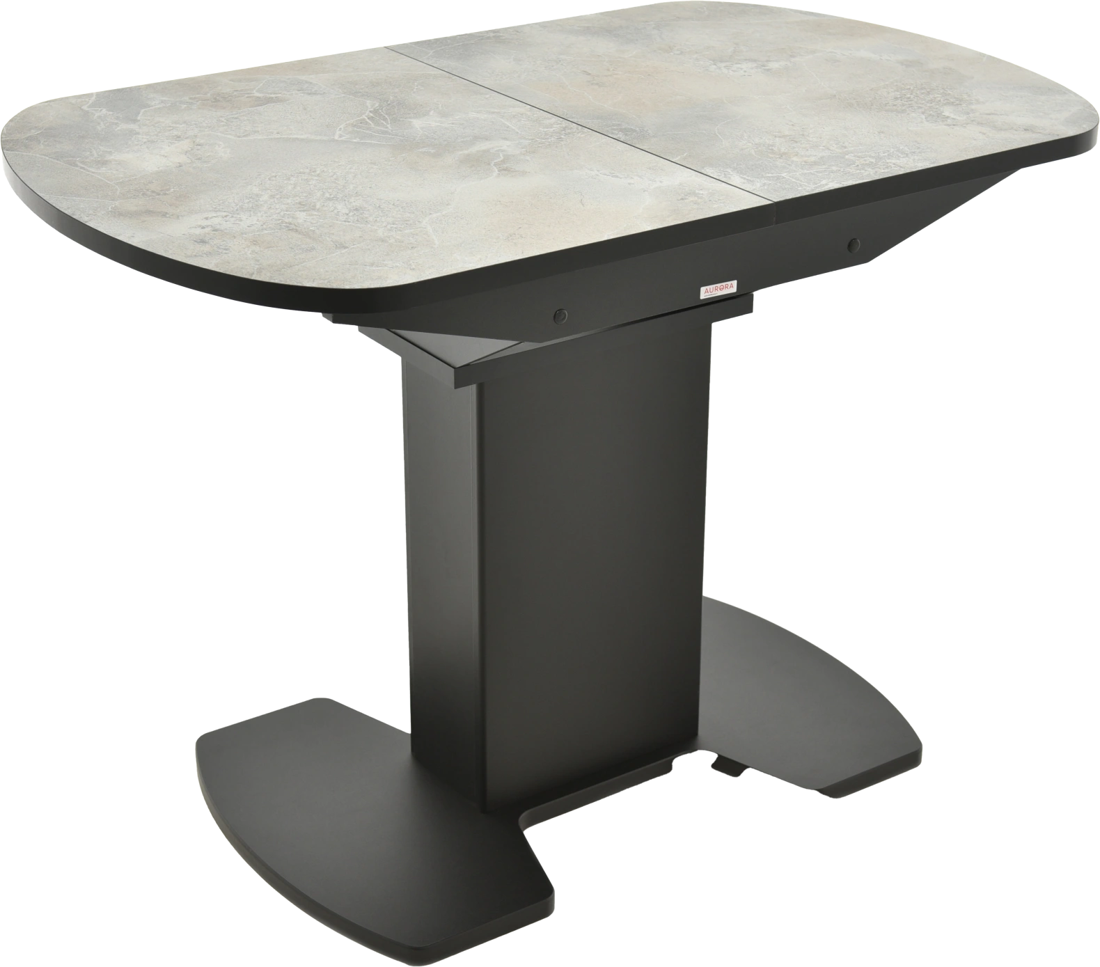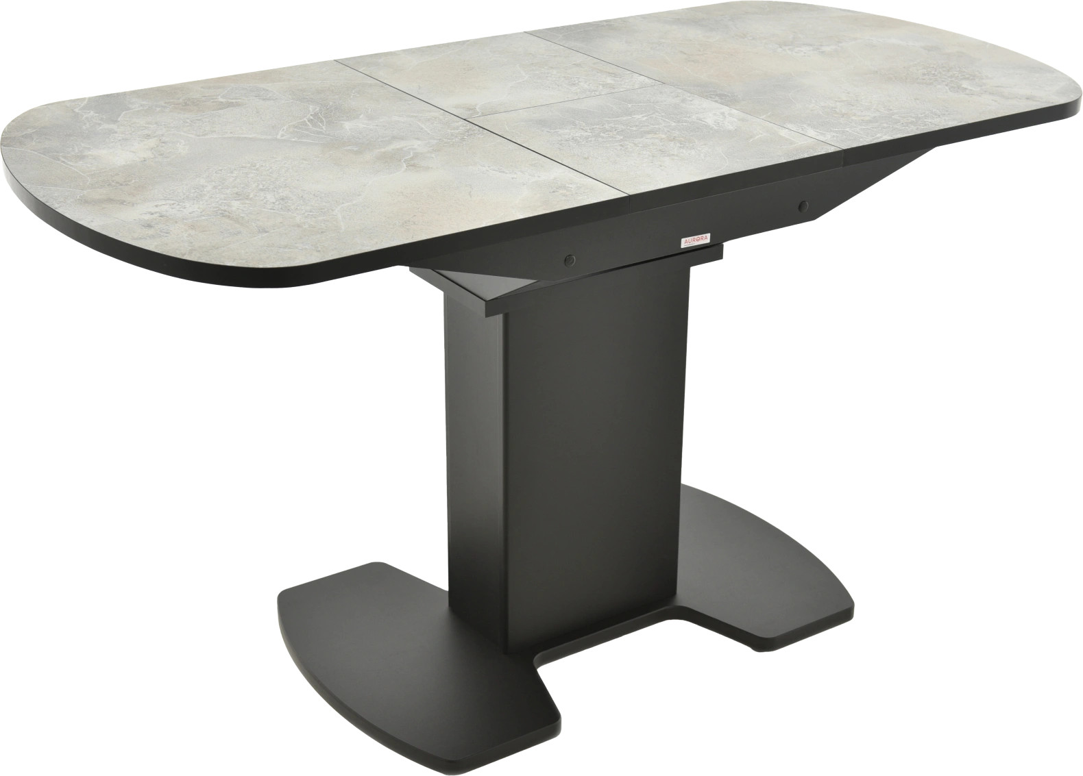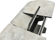 Отличительной чертой этого стола является одна опора, выполненная из МДФ в цвете подстолья. К опоре крепится непосредственно столешница. Стол раздвижной, механизм раскладки — бабочка, причем покрытие вкладыша так же изготовлено из пластика, что позволяет столу не терять эстетической окраски даже в разложенном варианте. Стоит отметить еще одну особенность стола «Корсика» — это выбор покрытия.