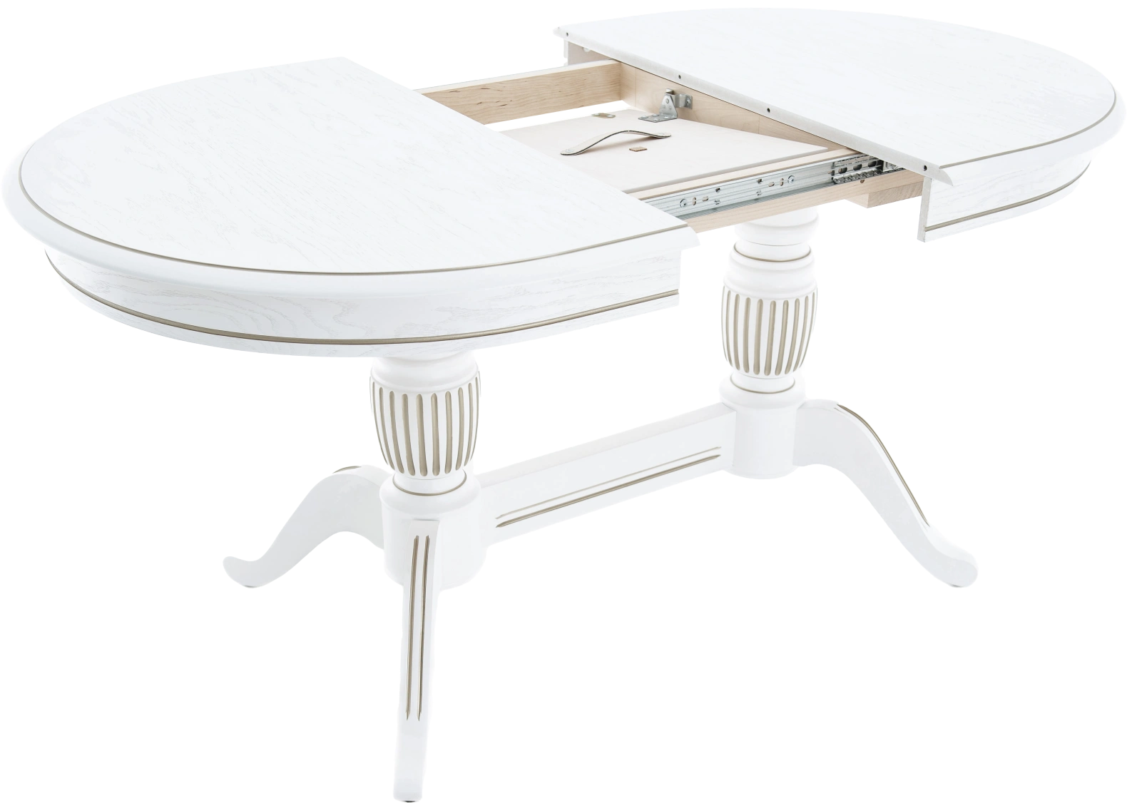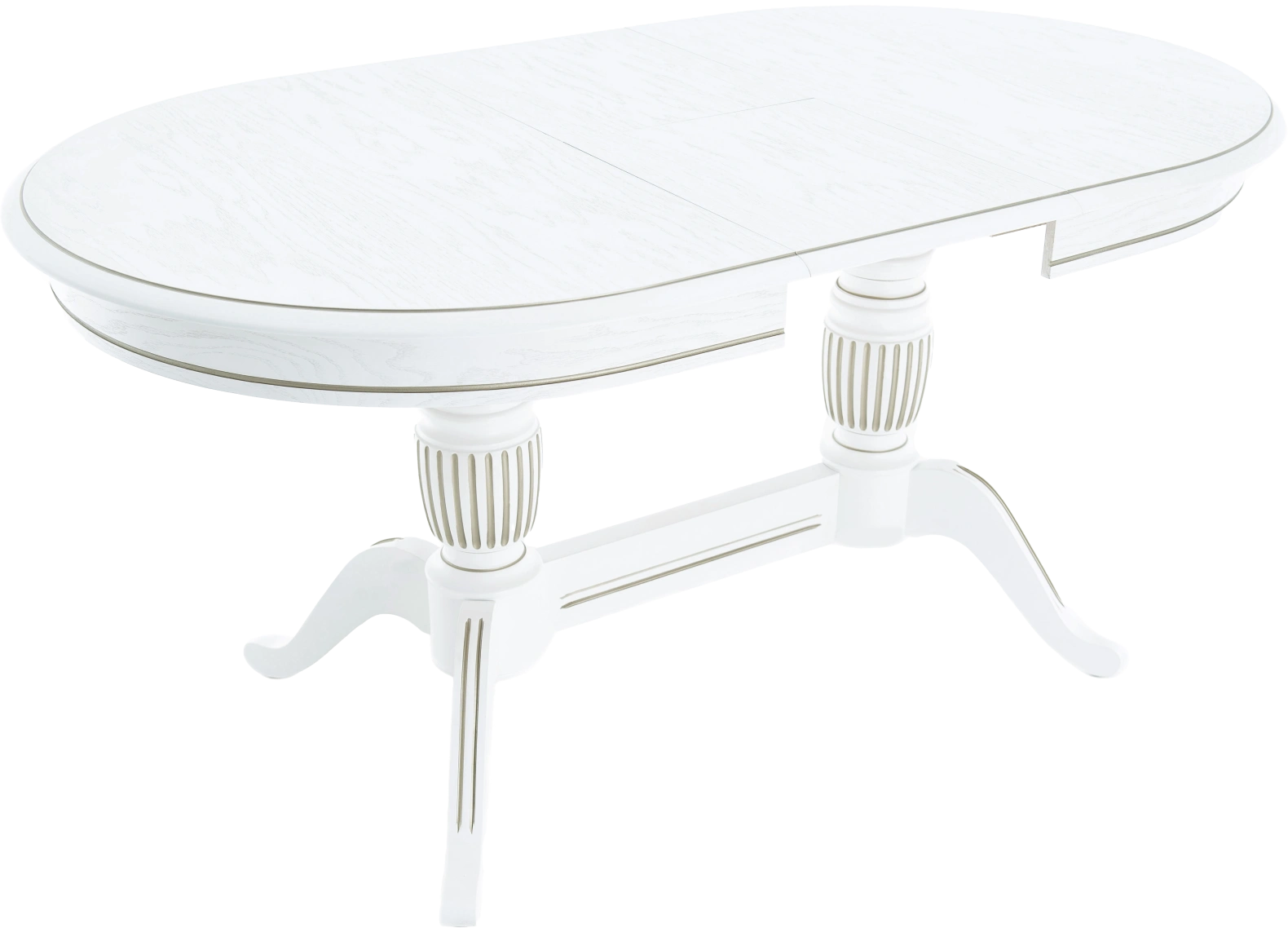 Обеденный раздвижной стол «Леонардо 2» овал, в крашении (Эмаль белая с золочением) от производителя «Димитровградской мебельной фабрики «Аврора» (Россия).