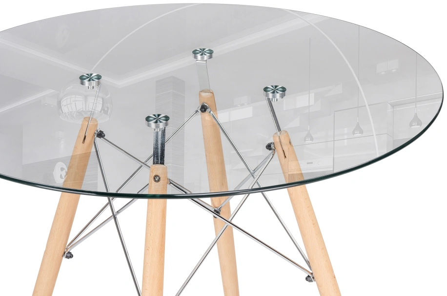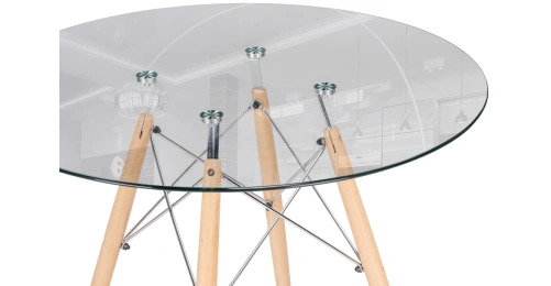 Стол PT-151 с ножками из массива бука и хромированными металлическими стяжками - это очень стильный и современный стол. Круглая стеклянная столешница толщиной 10 мм придает ему легкость и воздушность. Хромированные стяжки добавляют столу оригинальности и уникальности. Такой стол будет отлично смотреться в современном интерьере, а его функциональность и удобство использования позволят использовать его в различных ситуациях.