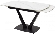 Стол ALATRI 120 с матовой керамической столешницей белый мрамор, черный каркас.