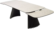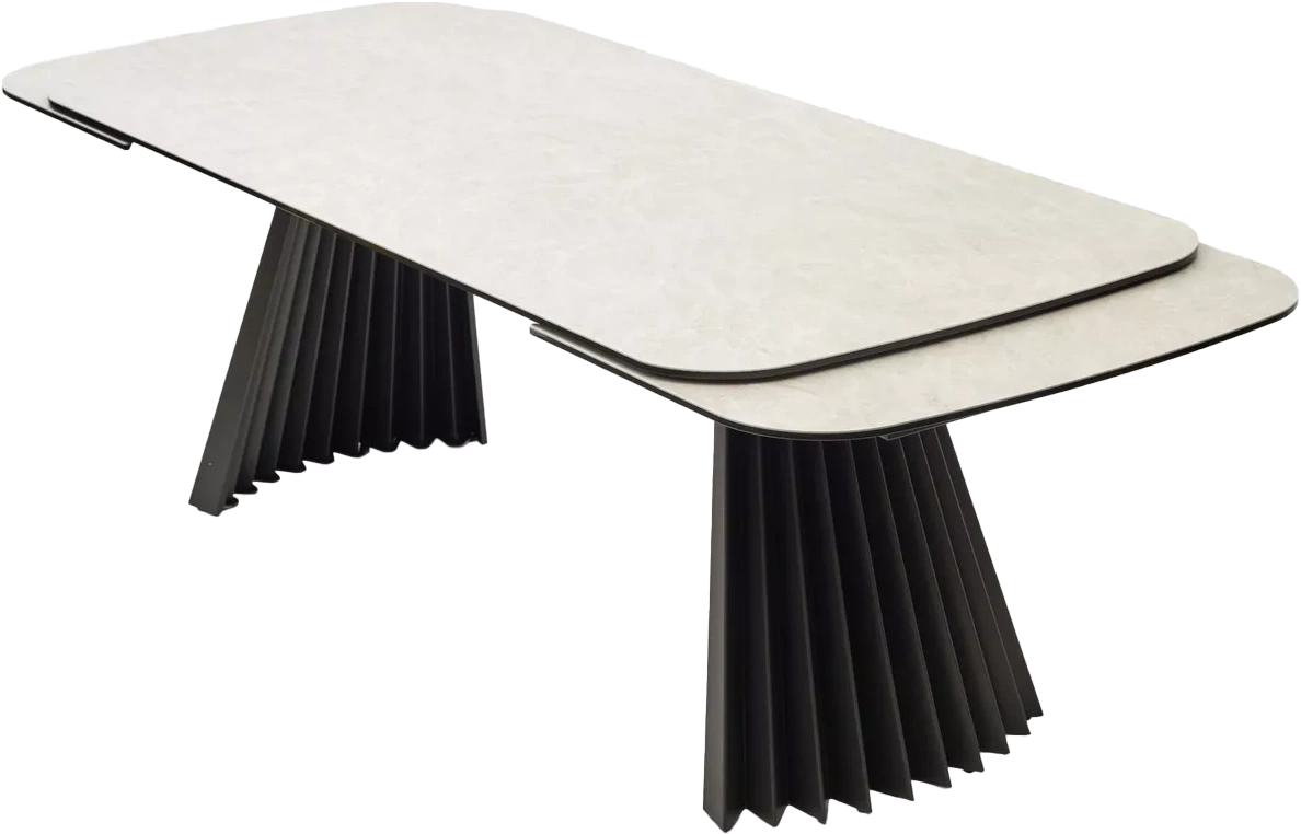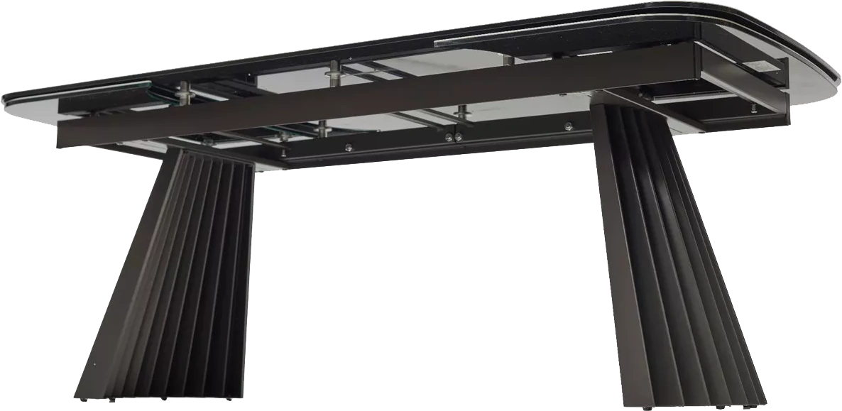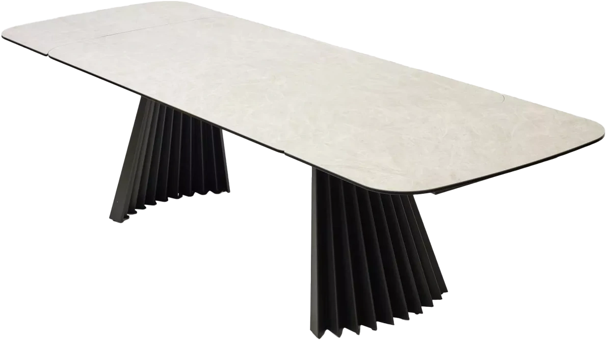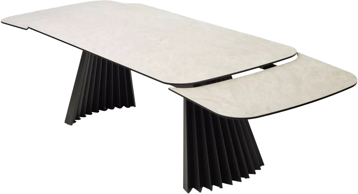 - двухсторонняя торцевая система раскладывания, две независимые вставки по 50 см позволяют увеличить длину столешницы на 250 см и 300 см при необходимости;