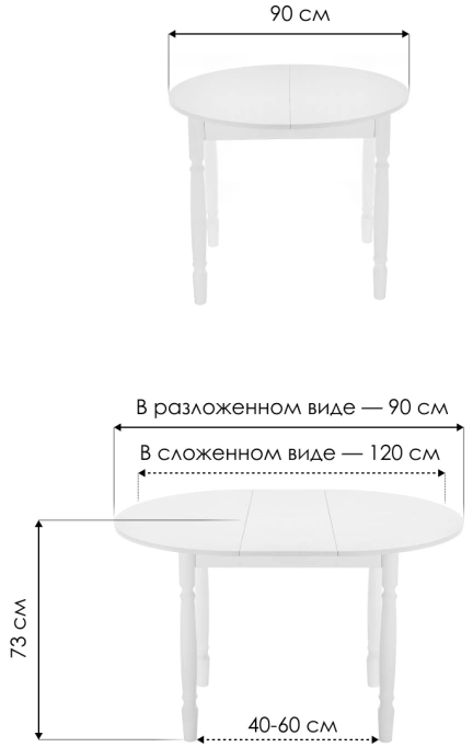 Кухонный стол раздвижной Аттер, 90(120)x73, ЛДСП, белый, каркас белый
