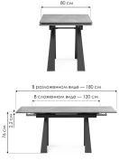 Кухонный стол раздвижной Бэйнбрук 120(180), МДФ, серый мрамор, каркас графит