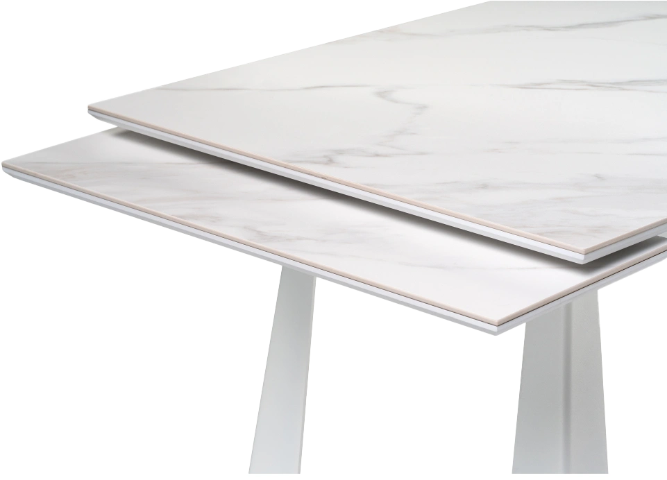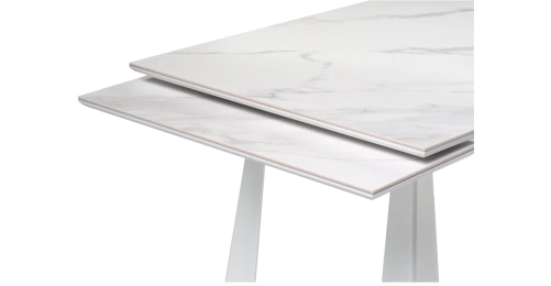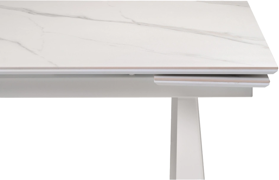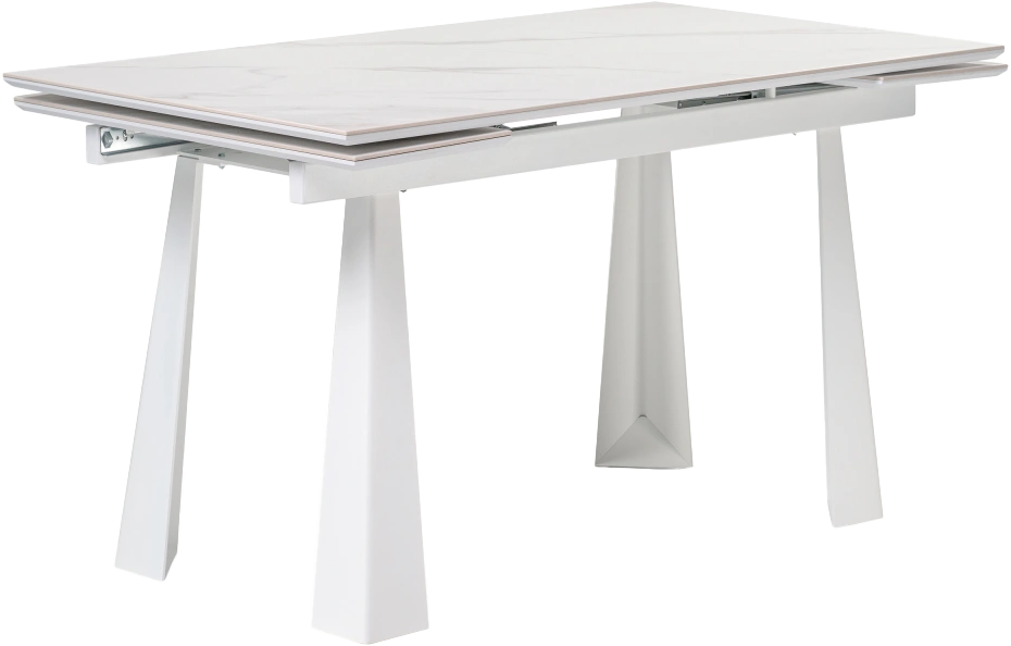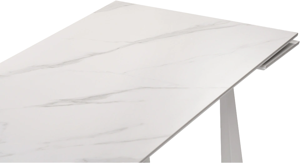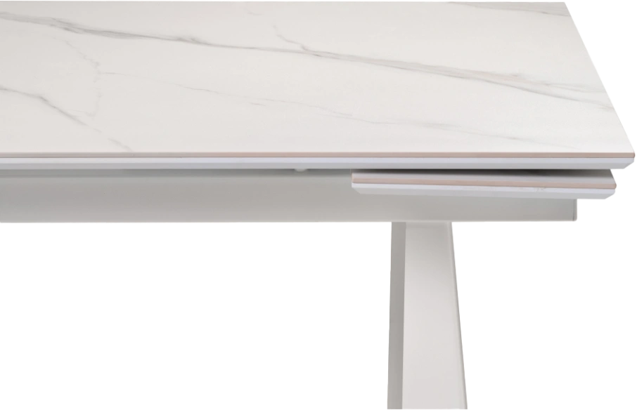 Кухонный стол раздвижной Бэйнбрук 140(200), белый мрамор, каркас белый