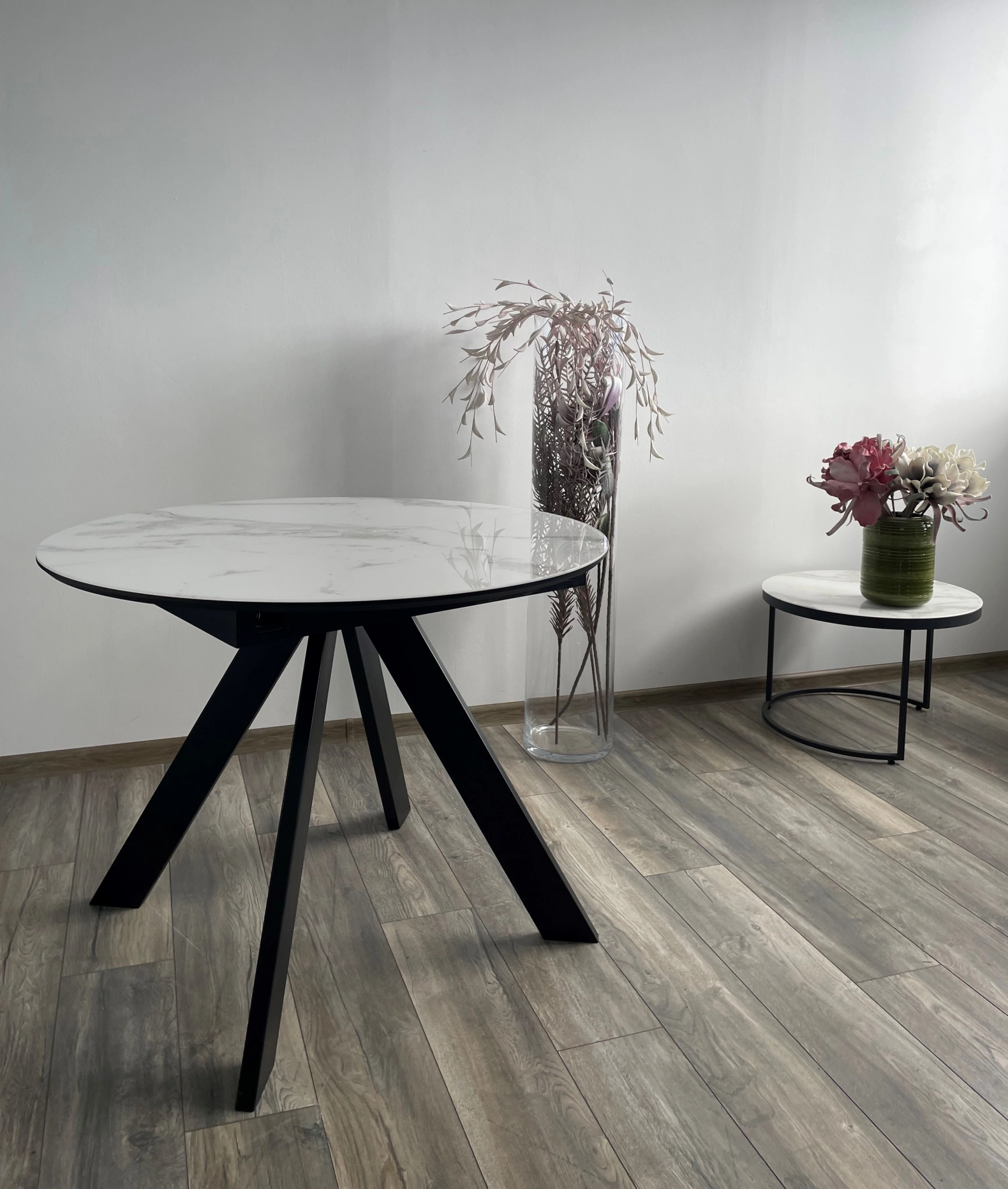 Стол БОНЖУР Белый мрамор со стеклянной столешницей