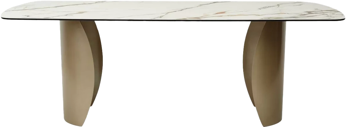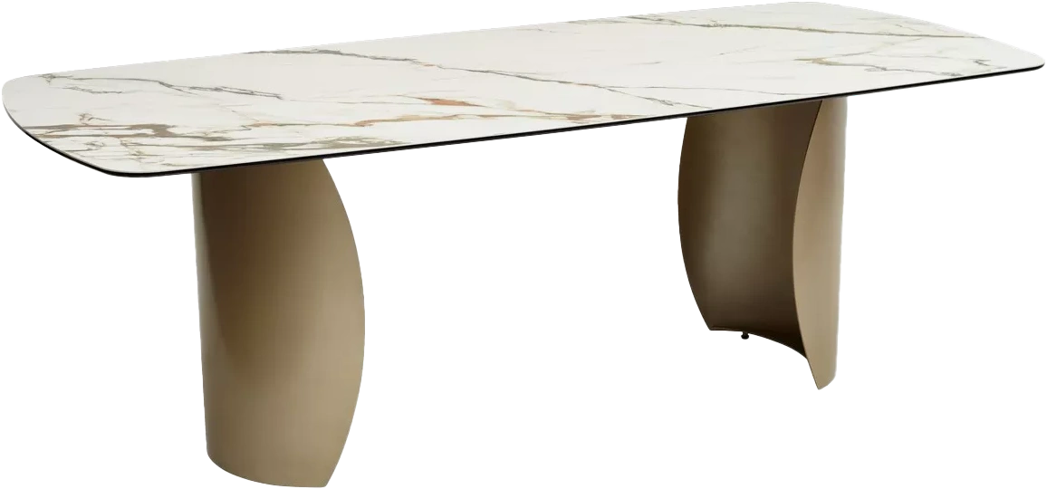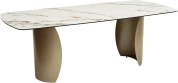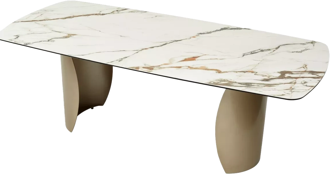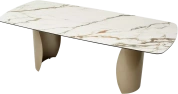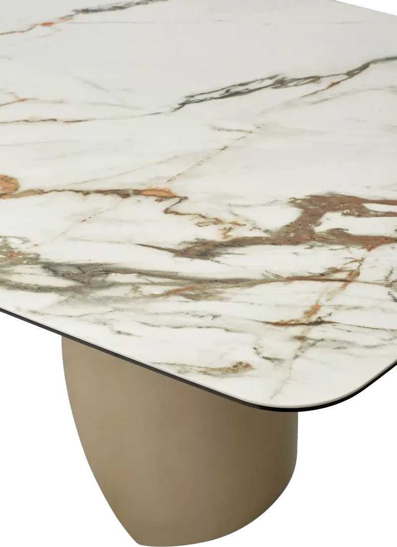 Стол дизайнерский BRONTE 220 с матовой керамической столешницей контрастный мрамор, каркас шампань
