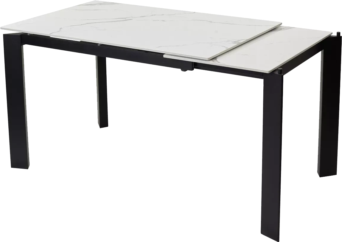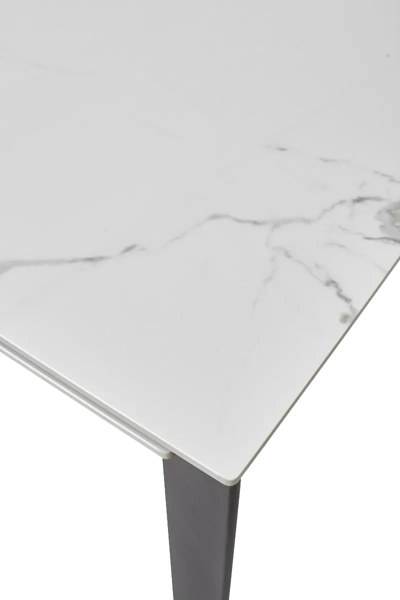 Стол CORNER 120 с керамической столешницей белый мрамор на черном каркасе