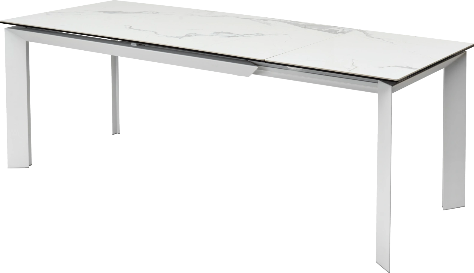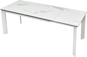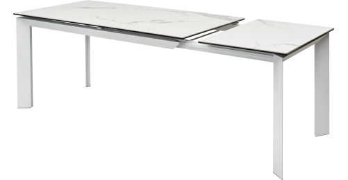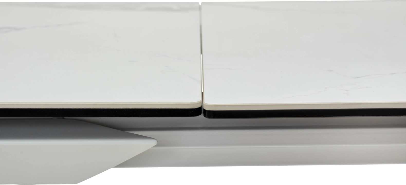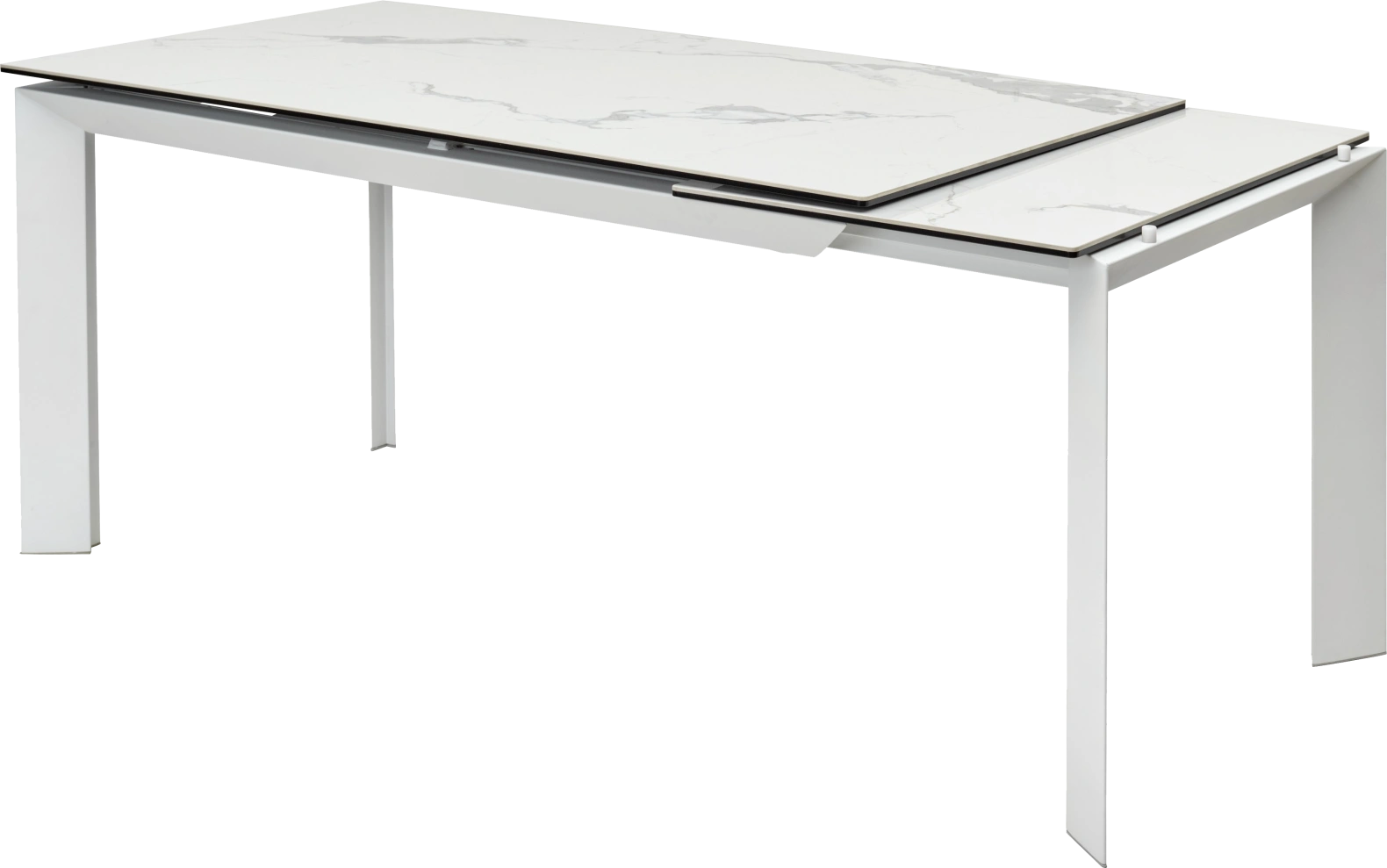 Стол CREMONA с глянцевой керамической столешницей "белый мрамор" на белом каркасе