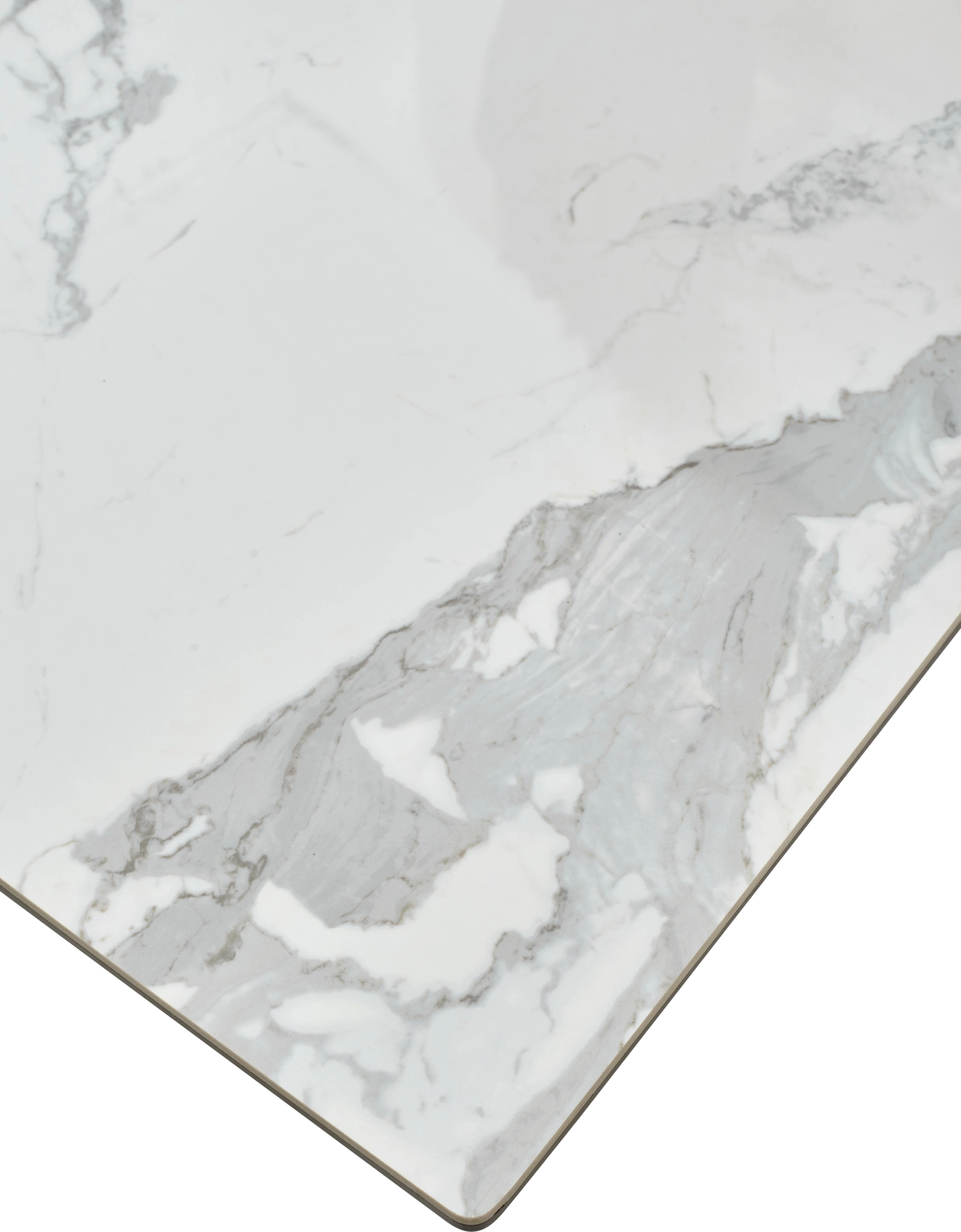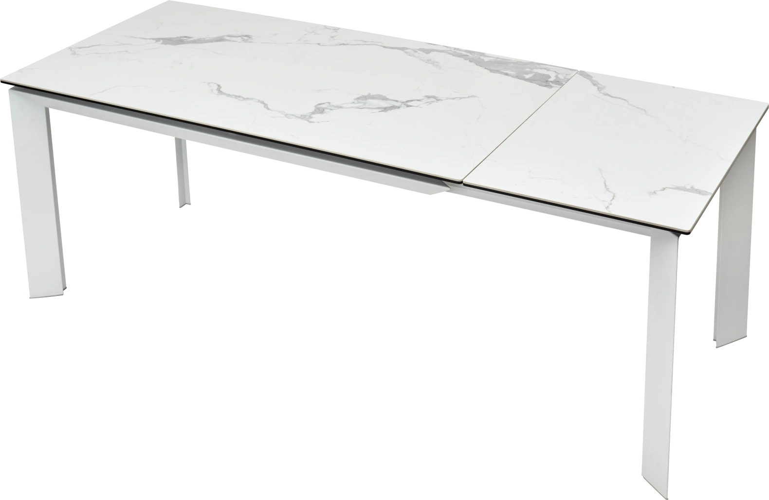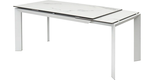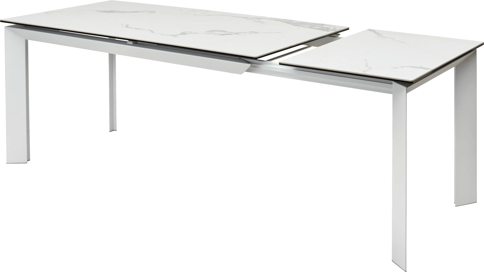 Стол CREMONA с глянцевой керамической столешницей "белый мрамор" на белом каркасе