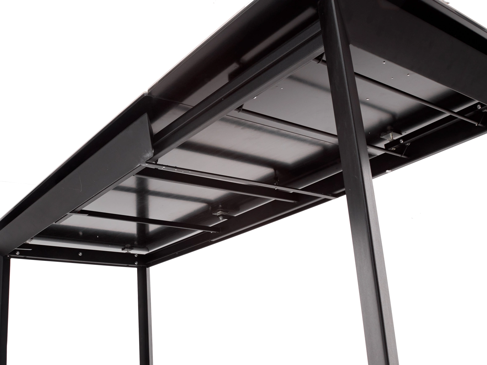 - керамика на стекле, глянец, толщина столешницы 13,5 мм (5,5 мм керамика + 8 мм стекло), не царапается, не впитывает загрязнения, термостойкая;